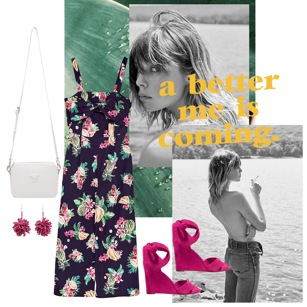 Ολόσωμη φόρμα ZARA. Τσάντα ώμου Versace, VERSACE BOUTIQUE. Πλατφόρμες Aquazzura, NET-A-PORTER.COM. Σκουλαρίκια MANGO.