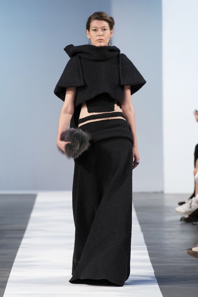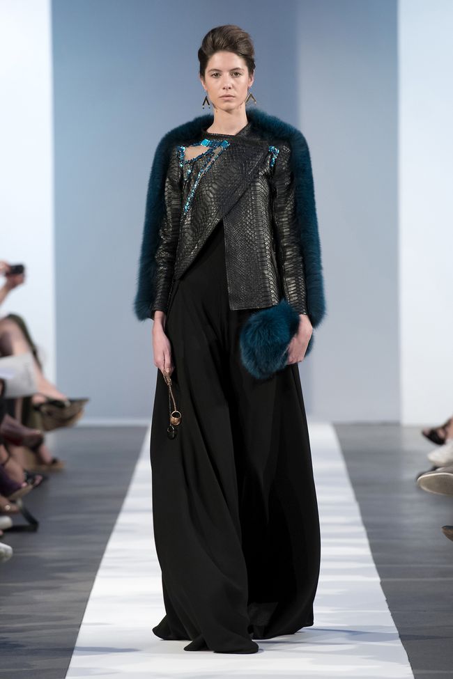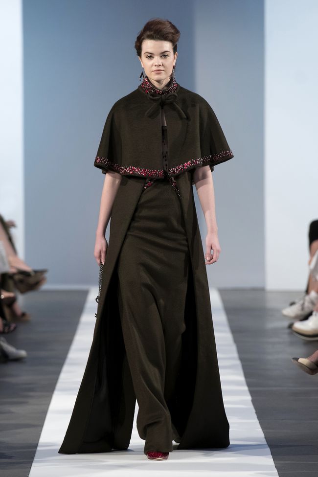 Θέτοντας στο κέντρο της συλλογής την maxi τουαλέτα, ο Laskaris πειραματίστηκε με διάφορες εκδοχές της, αρχικά σε σκοτεινούς τόνους και "βαριά" υφάσματα όπως το βελούδο, με κάπες που ολοκλήρωναν το look.