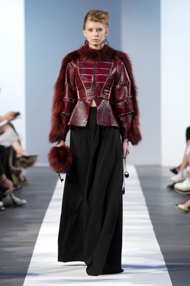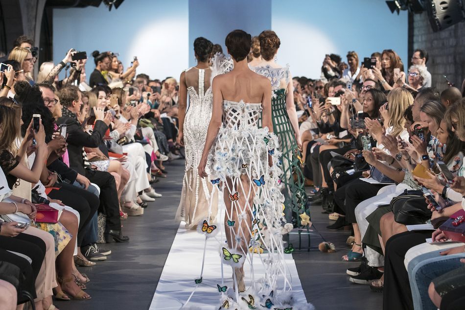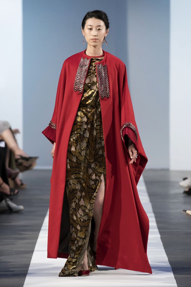 Η συλλογή περιελάμβανε επίσης πιο avant- garde κομμάτια στους τόνους του κόκκινου, του λευκού και του πράσινου, με χρυσές και γούνινες λεπτομέρειες αλλά και κεντημένες ανάγλυφες πεταλούδες.