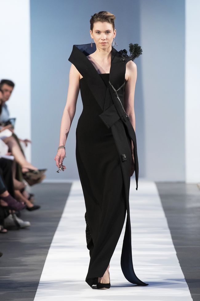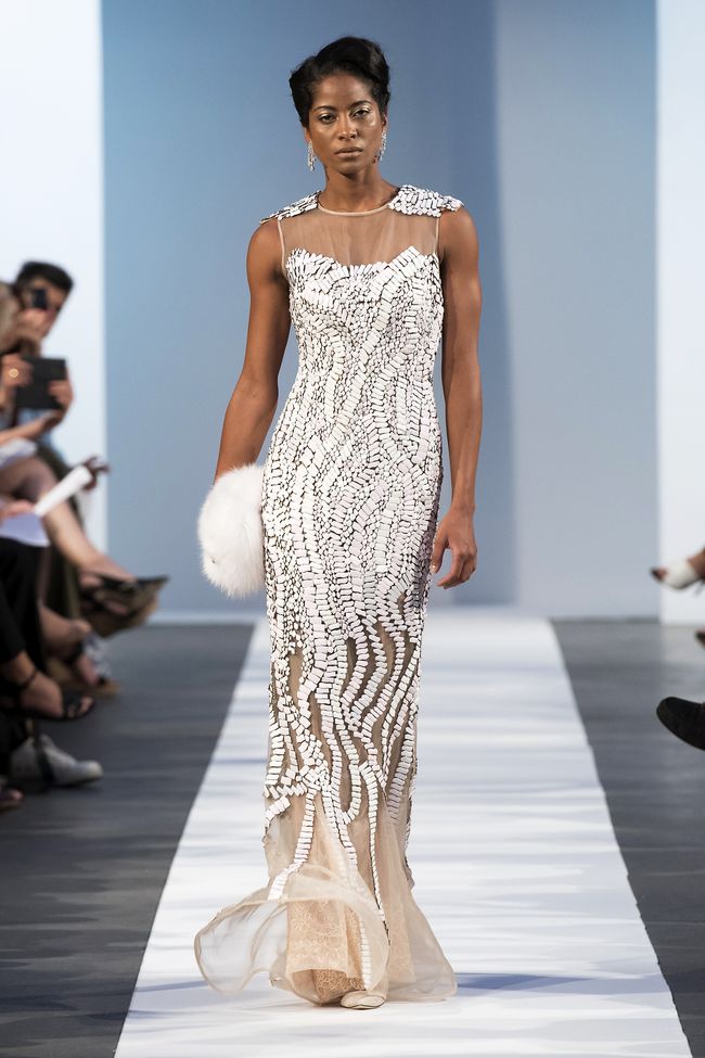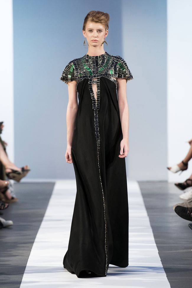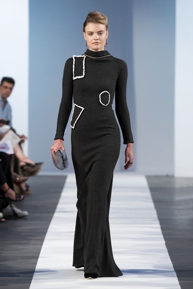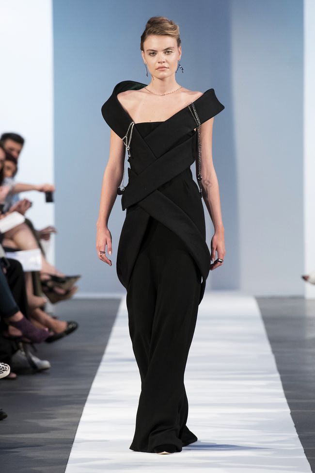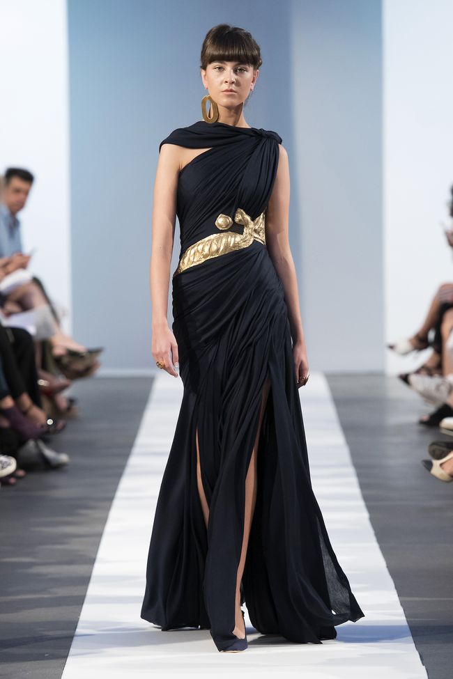 Ο Laskaris πειραματίστηκε τόσο με τη φόρμα όσο και με τις υφές, παρουσιάζοντας μια ενδιαφέρουσα συλλογή που έδωσε μια νέα οπτική στο κλασικό evening dressing.