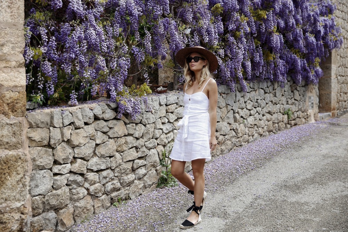 Ένα λευκό φόρεμα και ένα ψάθινο καπέλο