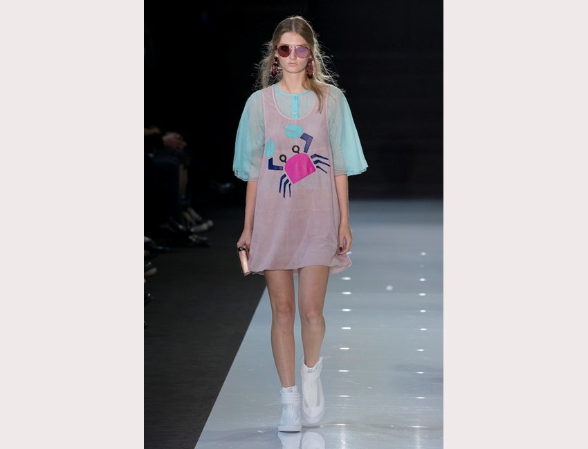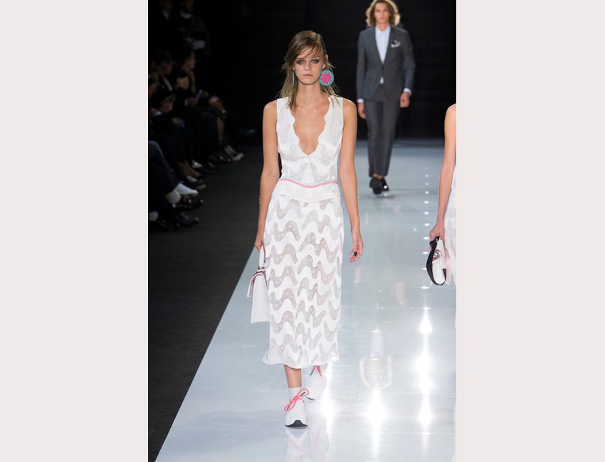 "Διασκέδασα ετοιμάζοντας αυτό το show, γιατί ήθελα να δείξω ότι μπορώ ακόμη να είμαι ενεργό μέλος του σύγχρονου fashion κόσμου", δήλωσε ο 83χρονος Giorgio Armani λίγο πριν το show του, που έγινε φέτος στο Λονδίνο. Και πράγματι, η συλλογή του για την Άνοιξη/Καλοκαίρι 2018 είχε πολλά στοιχεία που απευθύνονταν στο νεότερο κοινό. Logo T-shirts, παιχνιδιάρικα prints, sportwear, bomber jackets και βραδινά φορέματα σε αποχρώσεις ζαχαρωτών συνέθεταν την πιο πολύχρωμη, χαρούμενη και "fun"συλλογή του οίκου εδώ και πολύ καιρό, επιβεβαιώνοντας ότι πέτυχε το στοίχημά του.