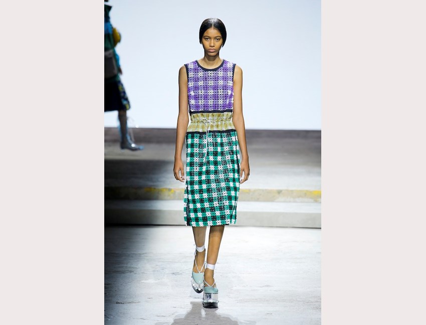 H αγαπημένη μας Μary Katrantzou, παρουσίασε - όπως πάντα- ένα show αναμφισβήτητα προσωπικό. Η σχεδιάστρια φίλτραρε όλη τη σκοτεινή πολιτική πραγματικότητα των τελευταίων μηνών μέσα από αυτό που λειτούργησε ως η προσωπική της διέξοδος: τα παιδικά παιχνίδια. Φούστες και φορέματα από lego, τσάντες με ανάγλυφα φλαμίνγκο και δελφίνια, prints με αριθμημένα τετράγωνα για ζωγραφική, λουλούδια, χάντρες και κρόσια- ο γεμάτος φαντασία, χαρά και αισιοδοξία παιδικός κόσμος ήταν εκεί, μέσα από τη συνεπή αφοσίωση της Katrantzou στο χρώμα και το print, ως βάση της δημιουργικότητάς της. Μοναδική "mainstream" πινελιά, τα κομμάτια από νάιλον ύφασμα, που τείνει να αναδειχτεί σε κορυφαία τάση της φετινής σεζόν.