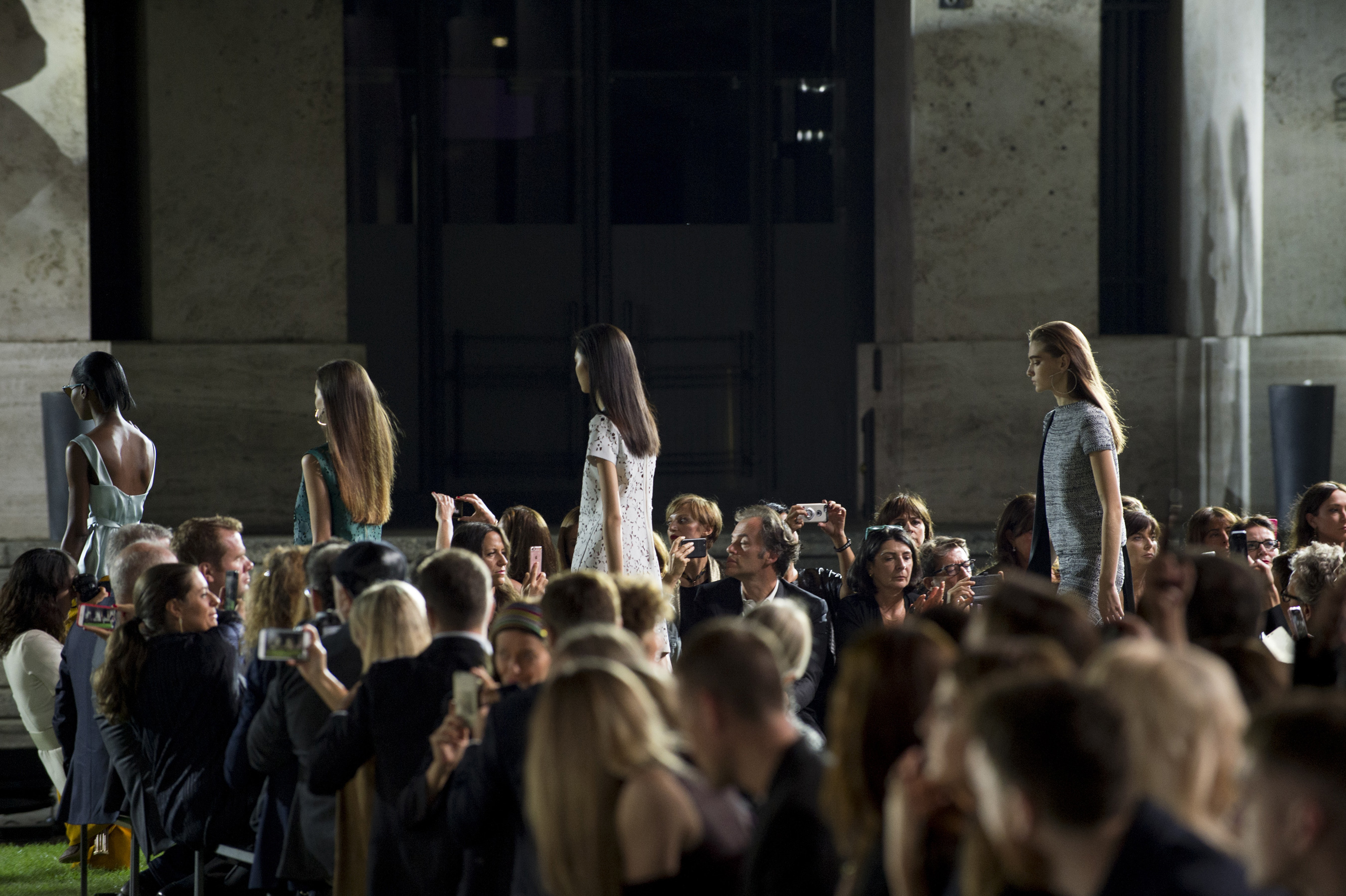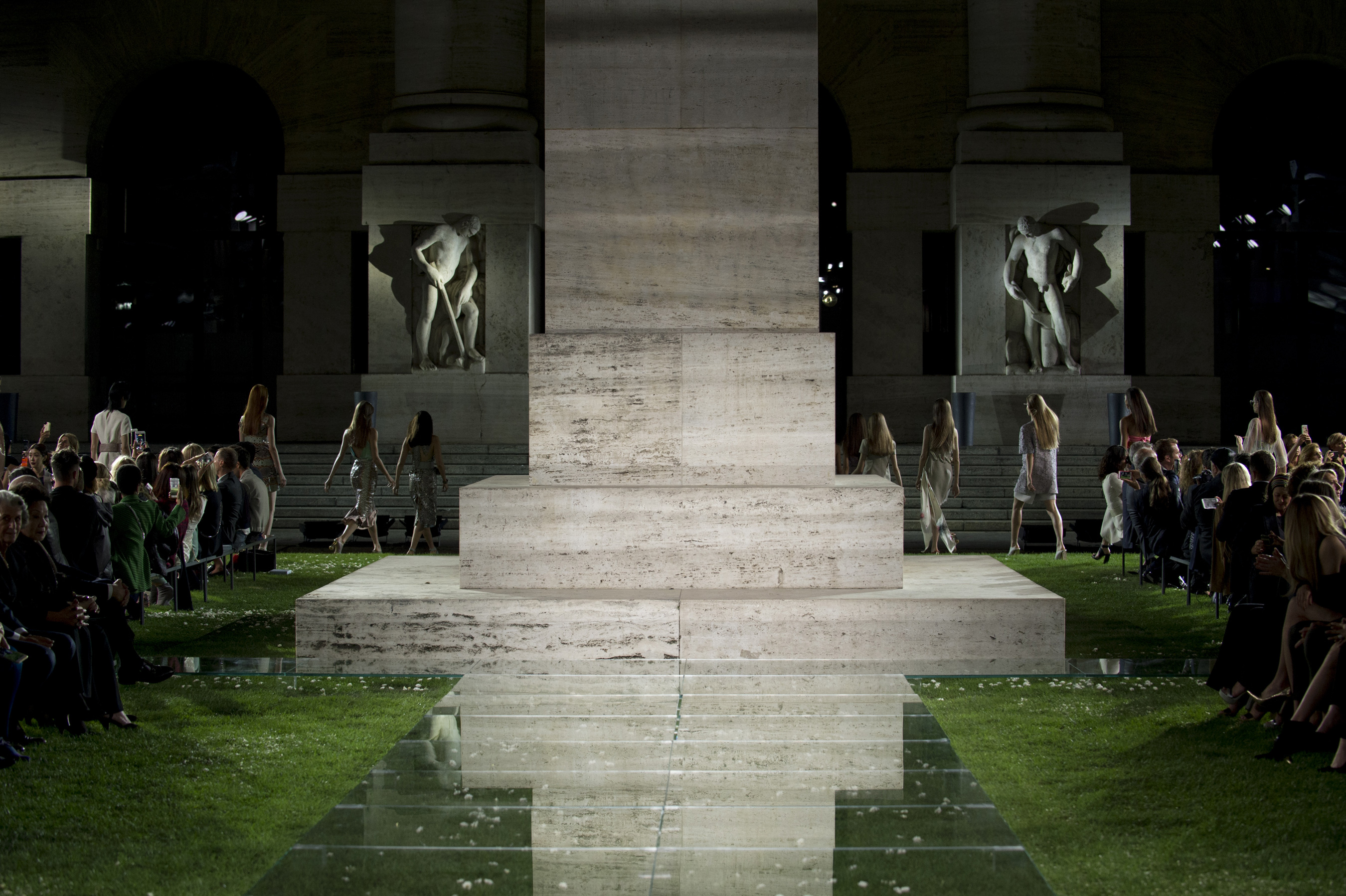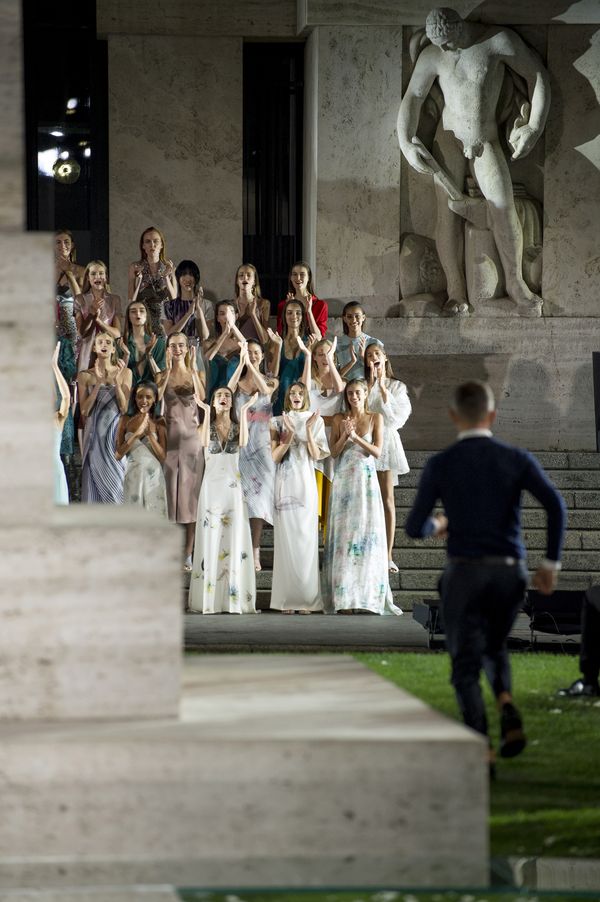 Ο καλλιτεχνικός διευθυντής του οίκου στο κομμάτι του womenswear, Fulvio Rigoni, έστησε έναν τεράστιο κήπο με μαργαρίτες στην είσοδο του ιστορικού χρηματιστηρίου Pallazo Mezzanotte του Μιλάνο και το show διεξήχθη κάτω από τον νυχτερινό ουρανό.