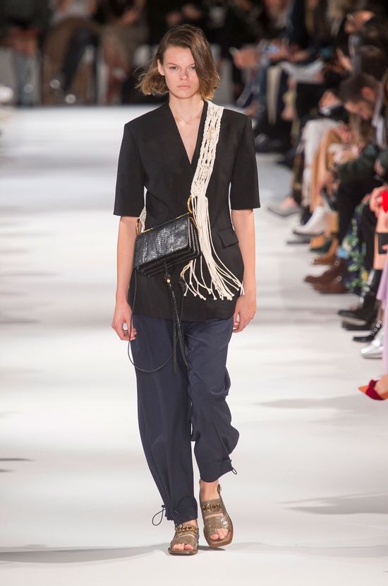 Ολόκληρο το show, βασίστηκε σε αυτή την ανταλλαγή και το συνδυασμό formal και casual στοιχείων: τονισμένοι ώμοι, ruffles και ταφτάς συνδυάστηκαν με νάιλον υφάσματα και τα φορέματα είχαν φαρδιές, χαλαρές γραμμές που "γείωναν" την επισημότητά τους. Kατά τα άλλα, stone-washed jeans, bomber jackets και cargo παντελόνια ολοκλήρωναν το daywear κομμάτι του show, δίνοντας ακόμη μια ιδιαίτερη πινελιά στη συλλογή.
