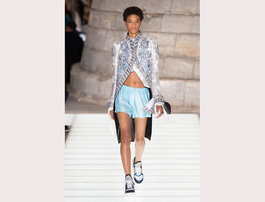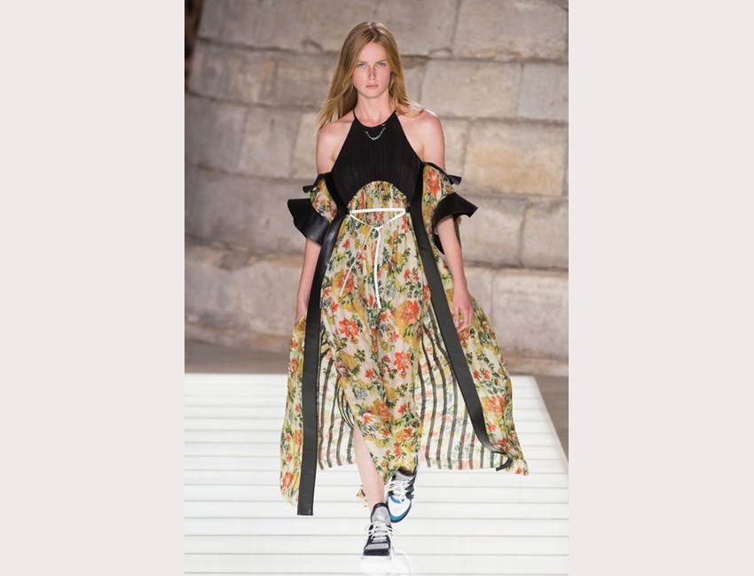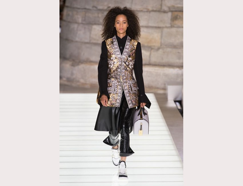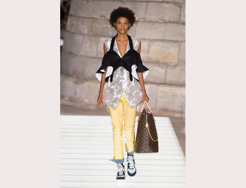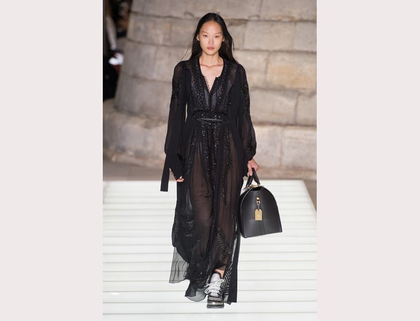 Δεν υπήρχε καταλληλότερος οίκος για το κλείσιμο, από τον αγαπημένο της Brigitte Macron, Louis Vuitton. O Nicolas Ghesquière κάλεσε το κοινό στο Pavillon de l'Horloge του Λούβρου, έναν χώρο που άνοιξε τις πόρτες του μόλις πέρυσι και έχει μεγάλη ιστορική σημασία. Το show έγινε σε ένα χώρο που ήταν μεσαιωνικό οχυρό. Η ιστορία του κτηρίου και η μεταμόρφωσή του από οχυρό, σε παλάτι και στη συνέχεια σε μουσείο ενέπνευσε τη συλλογή του Ghesquière για την Άνοιξη/Καλοκαίρι που έμοιαζε να παντρεύει ετερόκλητες ενδυματολογικές αναφορές σε ένα outfit. Βικτωριανά φράκα συνδυάστηκαν με σορτς αθλητικού τύπου και sneakers- το πιο 'must' αξεσουάρ των τουριστών που επισκέπτονται το Λούβρο. Η φόρμουλα επαναλήφθηκε και με αιθέρια πουκάμισα, πολυτελή κεντημένα jackets, σακάκια και γιλέκα- όλα 'επέστρεφαν' στο παρόν στο κάτω μέρος του outfit. Τα φορέματα ήταν εμφανώς πιο σύγχρονα, αν και με "δάνεια" από τη βασιλική πολυτέλεια- διαφάνειες, κεντήματα, φλοράλ και κορδόνια ή κορδέλες που παρέπεμπαν στους βικτωριανούς κορσέδες. Bonus: Το T-shirt με το logo της πολυσυζητημένης σειράς Stranger Things που πρόσθεσε μια πινελιά χιούμορ και επικαιρότητας στο show.