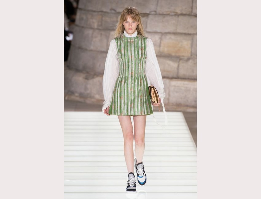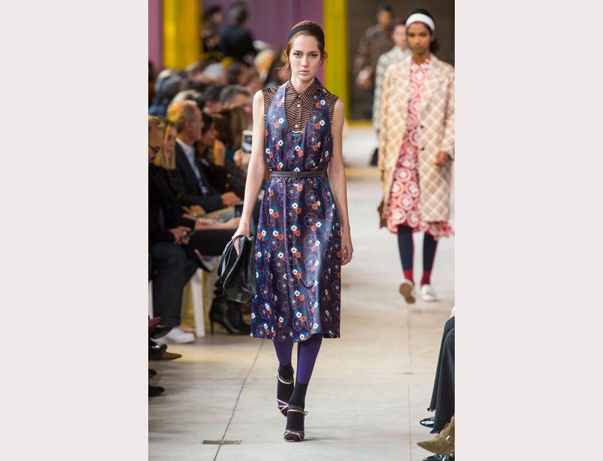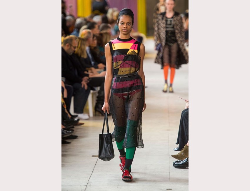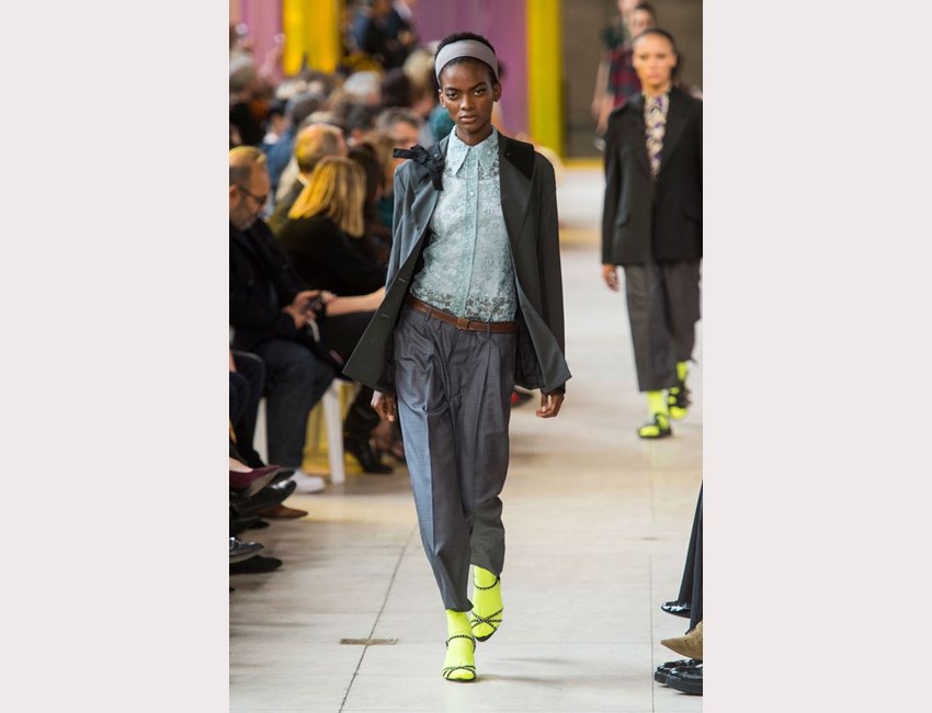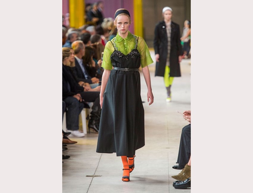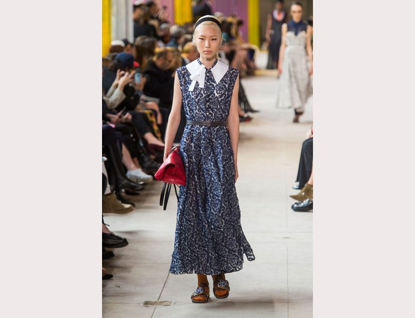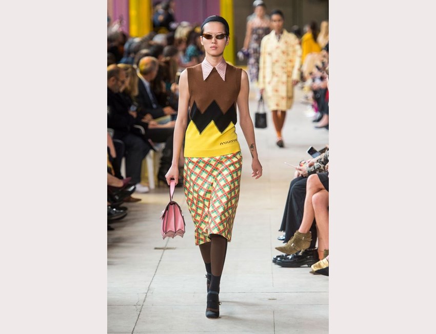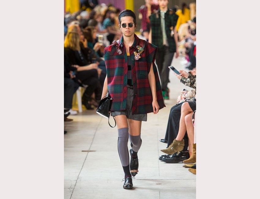 Κι ενώ οι περισσότεροι νέοι σχεδιαστές απευθύνονται με μεγάιλη επιτυχία στη νέα γενιά, δημιουργώντας τα ρούχα που θέλουν να φορούν οι millenials, η Miuccia Prada έκανε ένα μάλλον τολμηρό βήμα. Η συλλογή της για τον οίκο Miu Miu εστίαζε στο ντύσιμο της νέας γενιάς... των '60s! Με επιρροές από τα εφηβικά και φοιτητικά της χρόνια αλλά και την αναβίωση αυτού του στυλ μέσα από τα vintage μαγαζιά του Μιλάνου στη δεκαετία του '80, η Prada έστησε ένα show με συνοχή και συνέπεια, κερδίζοντας το στοίχημα της καινοτομίας μέσα από κάτι 'παλιό'. Τα δαντελένια midi φορέματα, τα καρό lumberjack jackets, τα 'κολλεγιακά' πουλόβερ, τα kitten heels έρχονταν κατευθείαν από τα '60s- οι νέον κάλτσες, οι διαφάνειες που αποκάλυπταν τα εσώρουχα, τα εντυπωσιακά prints έρχονταν από το παρόν για να τα συναντήσουν κάπου στη μέση. Αν και παρακινδυνευμένο, το πείραμα πέτυχε.