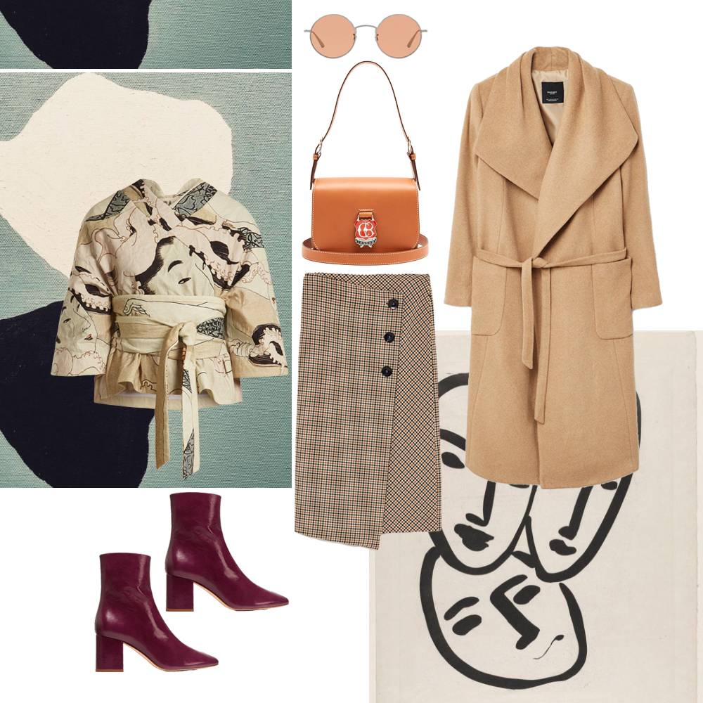 Παλτό MANGO, MANGO.COM. Wrap top A.W.A.K.E., MATCHESFASHION.COM. Φούστα ZARA. Τσάντα ώμου Connolly, MATCHESFASHION.COM. Ankle boots ZARA. Γυαλιά ηλίου Oliver Peoples, LUXOTTICA HELLAS.