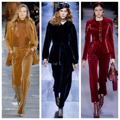 Το ανδρόγυνο στυλ, απόλυτο must της σεζόν, συναντά την επιστροφή του αριστοκρατικού βελούδου στις elegant αποχρώσεις των πολύτιμων λίθων όπως είναι το μπλε του ζαφειριού ή το πράσινο του σμαραγδιού αλλά και στο διαχρονικά θηλυκό ταμπά.