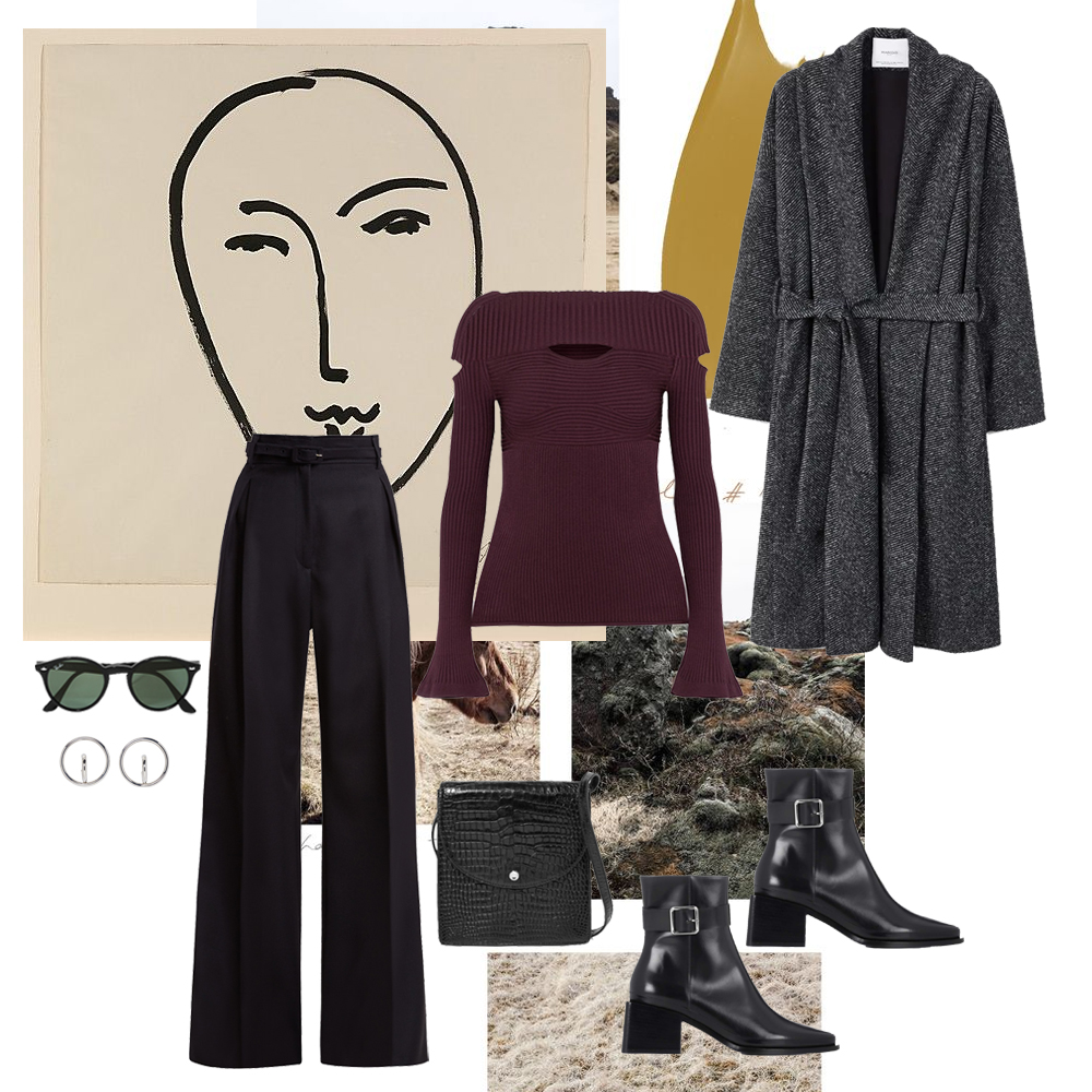 Παλτό Mango, MANGO.COM. Top Cushnie et Ochs, NET-A-PORTER.COM. Παντελόνι Gabriela Hearst, MATCHESFASHION.COM. Τσάντα Εlizabeth and James, NET-A-PORTER.COM. Μποτάκια Jil Sander, MYTHERESA.COM. Γυαλιά ηλίου Ray-Ban, LUXOTTICA HELLAS. Σκουλαρίκια Charlotte Chesnais, SSENSE.COM.