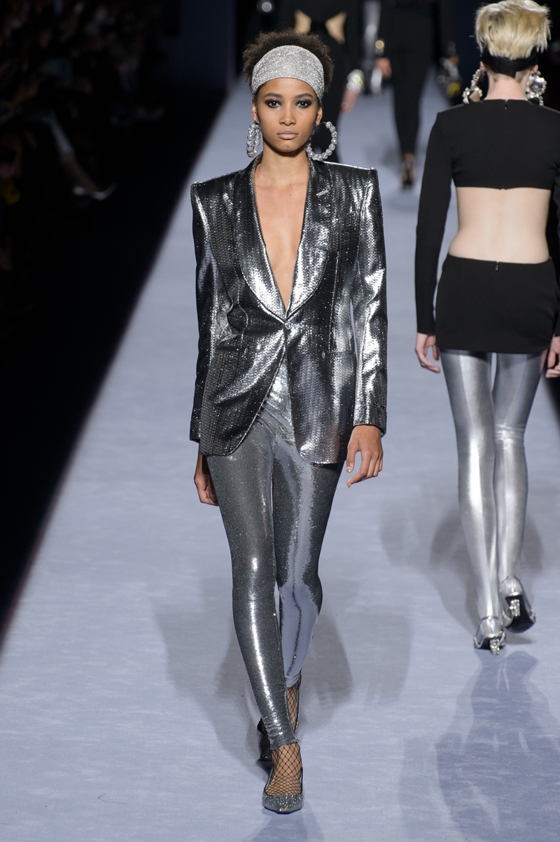 Γεμάτη λαμπερές πούλιες, animal print σε αναπάντεχα χρώματα, μεταλλιζέ υφές και πολύχρωμη γούνα, η συλλογή συνδυάζει το glamorous αλλά και kitsch "ιταλιάνικο" στιλ με την ανέμελη γοητεία της Δυτικής Ακτής. Η γυναίκα Tom Ford είναι μία σύγχρονη φεμινίστρια, που ξέρει να περνάει καλά και που βλέπει τη θηλυκότητα της όχι σαν εμπόδιο αλλά σαν προσόν μέσα σε έναν ομολογουμένως ανδροκρατούμενο κόσμο.