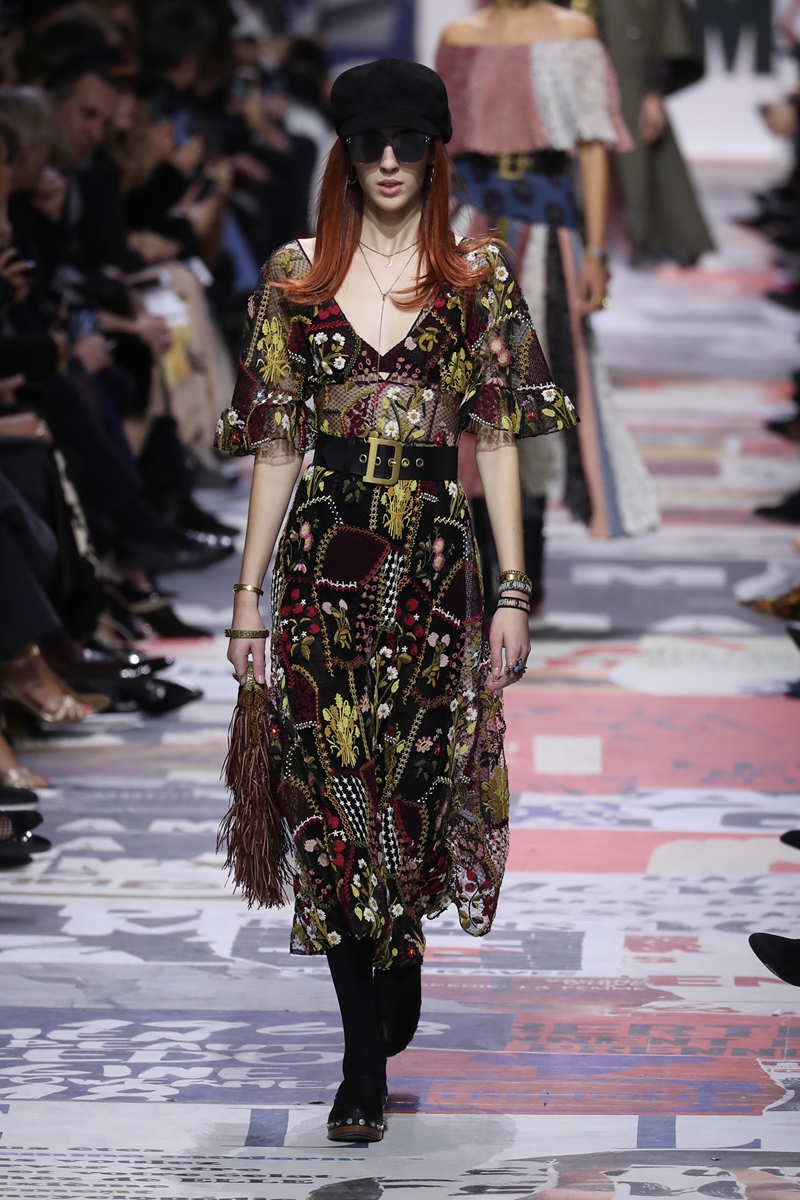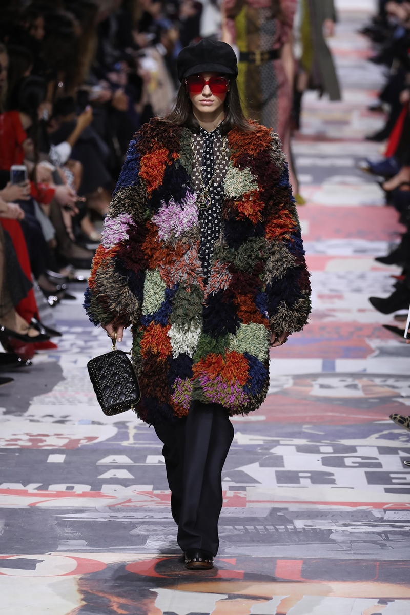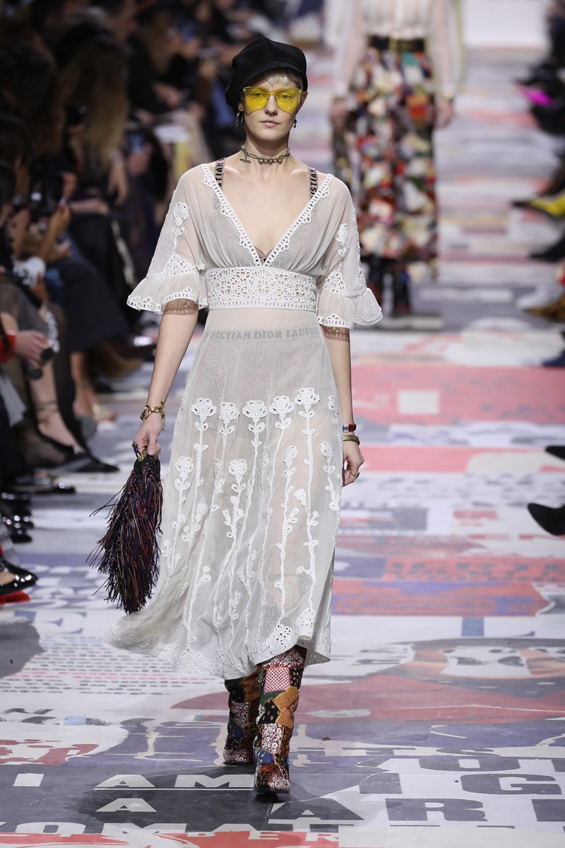 Κλασικά καρό, ευφάνταστα patchwork, "φεμινιστικές" δυναμικές διαφάνειες και ηχηρά slogans χρωματίζουν boxy ταγιέρ, αέρινα φορέματα και oversized κοστούμια. Τα πιο θηλυκά από αυτά έχουν κεντήματα που θυμίζουν την τέχνη των γιαγιάδων μας, χωρίς ωστόσο να είναι. Αυτό που κάνουν ωστόσο, είναι να λειτουργούν ως άγκυρα με το παρελθον, να μας θυμίζουν την ιστορία των μαμάδων μας, των γιαγιάδων μας, των μητριαρχών μας.