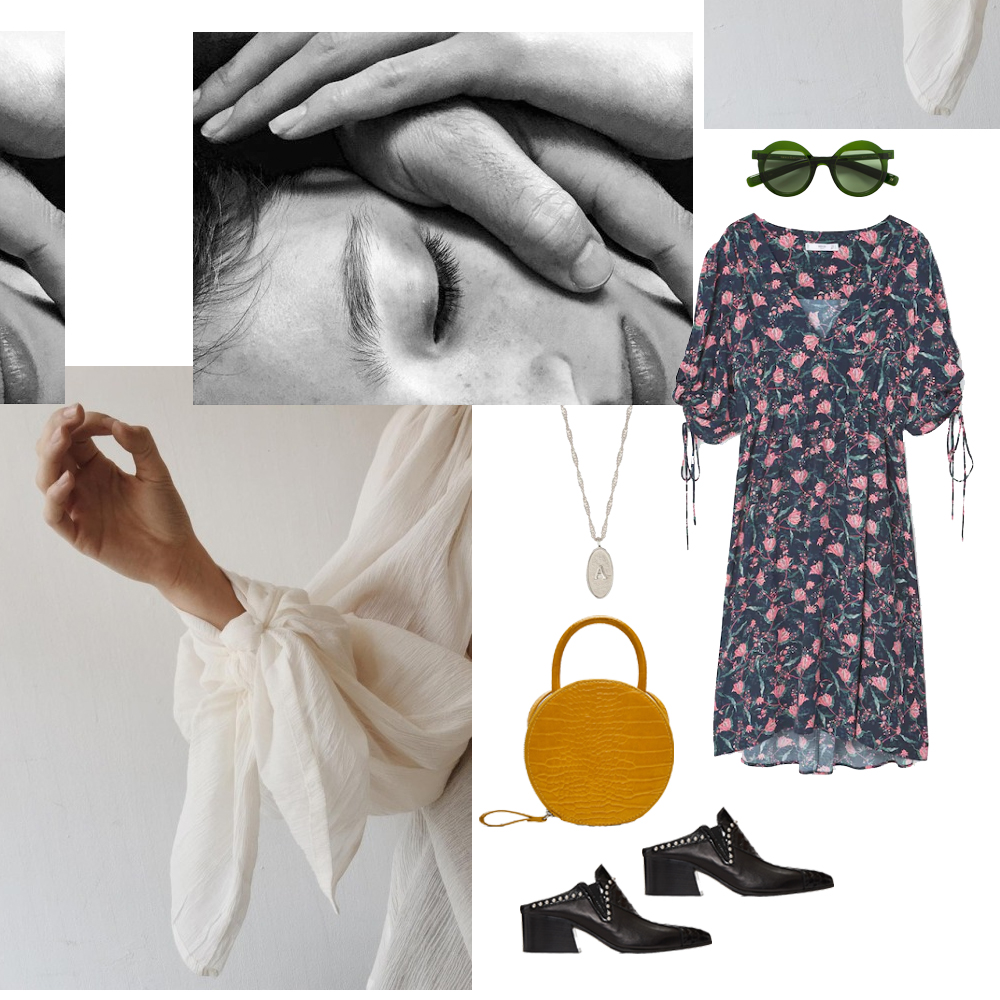 Φόρεμα Mango, MANGOOUTLET.COM. Τσάντα Zara, ZARA.COM. Mules Acne Studios, SSENSE.COM. Κόσμημα για τον λαιμό Hermina Wristwear, HERMINAWRISTWEAR.COM. Γυαλιά ηλίου Kaleos Eyehunters, THE WORKSHOP, τηλ.: 210 9314549.