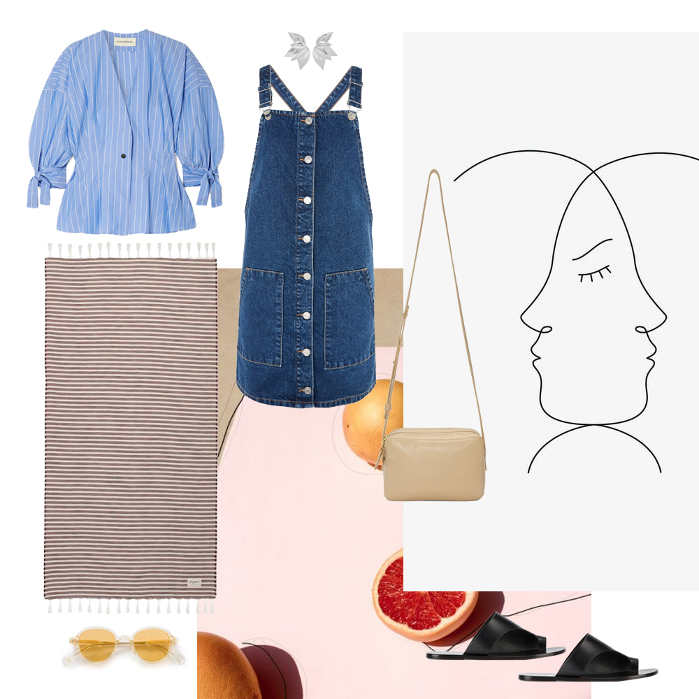 Σαλοπέτα Topshop, TOPSHOP.COM. Top By Malene Birger, NET-A-PORTER.COM. Πετσέτα θαλάσσης Sea you soon, SEAYOUSOON.GR. Τσάντα Mansur Gavriel, SSENSE.COM. Σανδάλια Atp Atelier, FARFETCH.COM. Γυαλιά ηλίου Kaleos Eyehunters, THE WORKSHOP, τηλ.: 210 9314549. Σκουλαρίκια Meadowlark, NET-A-PORTER.COM.