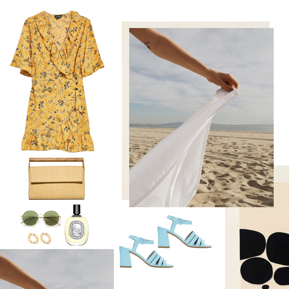 Playsuit Topshop, TOPSHOP.COM. Τσάντα Carolina Santo Domingo, NET-A-PORTER.COM. Flats Mango, MANGO.COM. Γυαλιά ηλίου Maison Margiela, SSENSE.COM. Βραχιόλι La Vie Jewelry, LAVIEJEWELRY.COM.