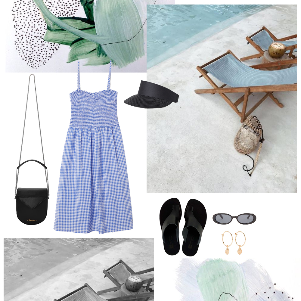 Φόρεμα H&M, HM.COM. Τσάντα 3.1 Phillip Lim, SSENSE.COM. Flats Σανδάλια στη Στοά, SANDALIASTISTOA.GR. Γυαλιά ηλίου Le Specs, MATCHESFASHION.COM. Ψάθινο καπέλο H&M, HM.COM. Σκουλαρίκια Sarah & Sebastian, NET-A-PORTER.COM.