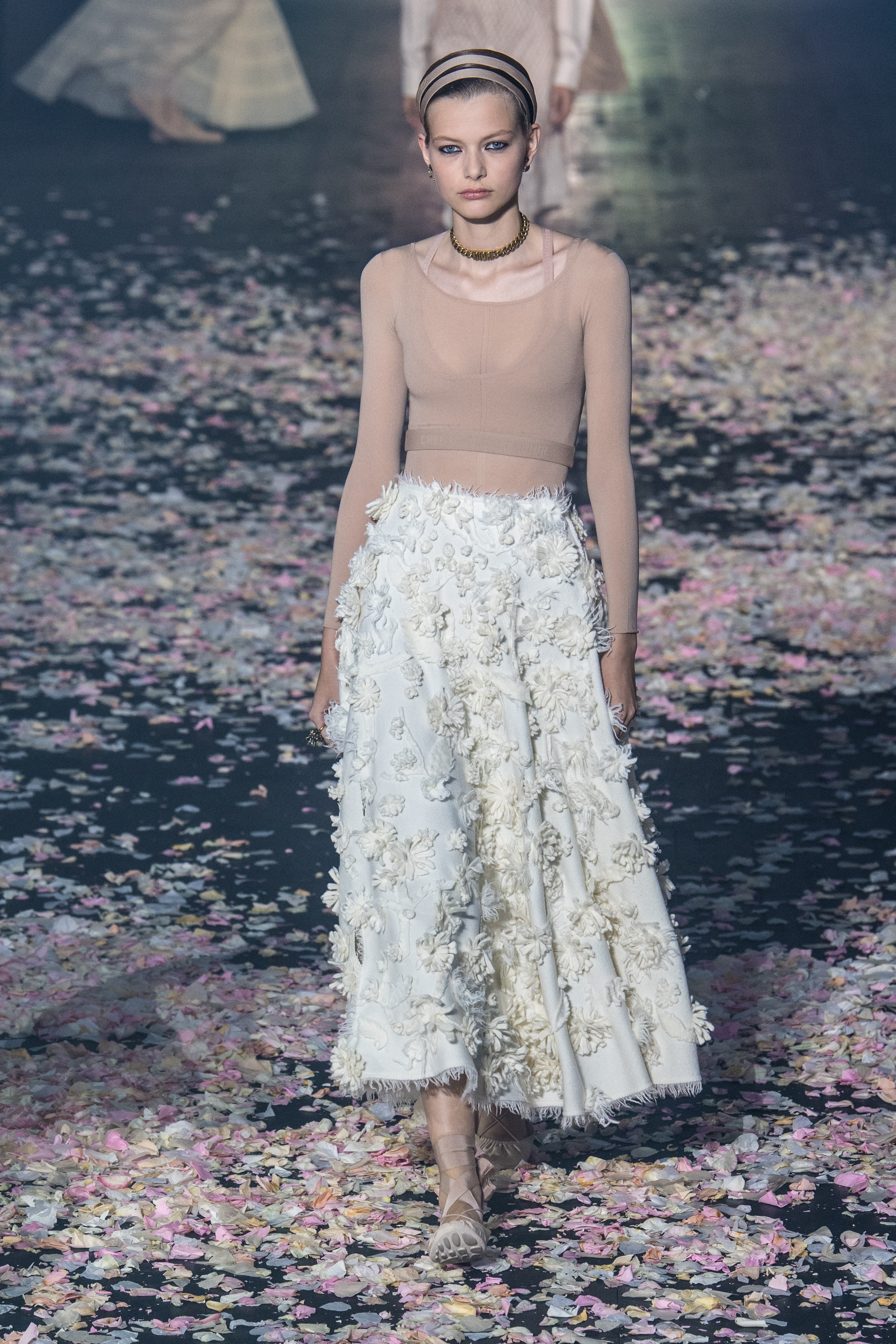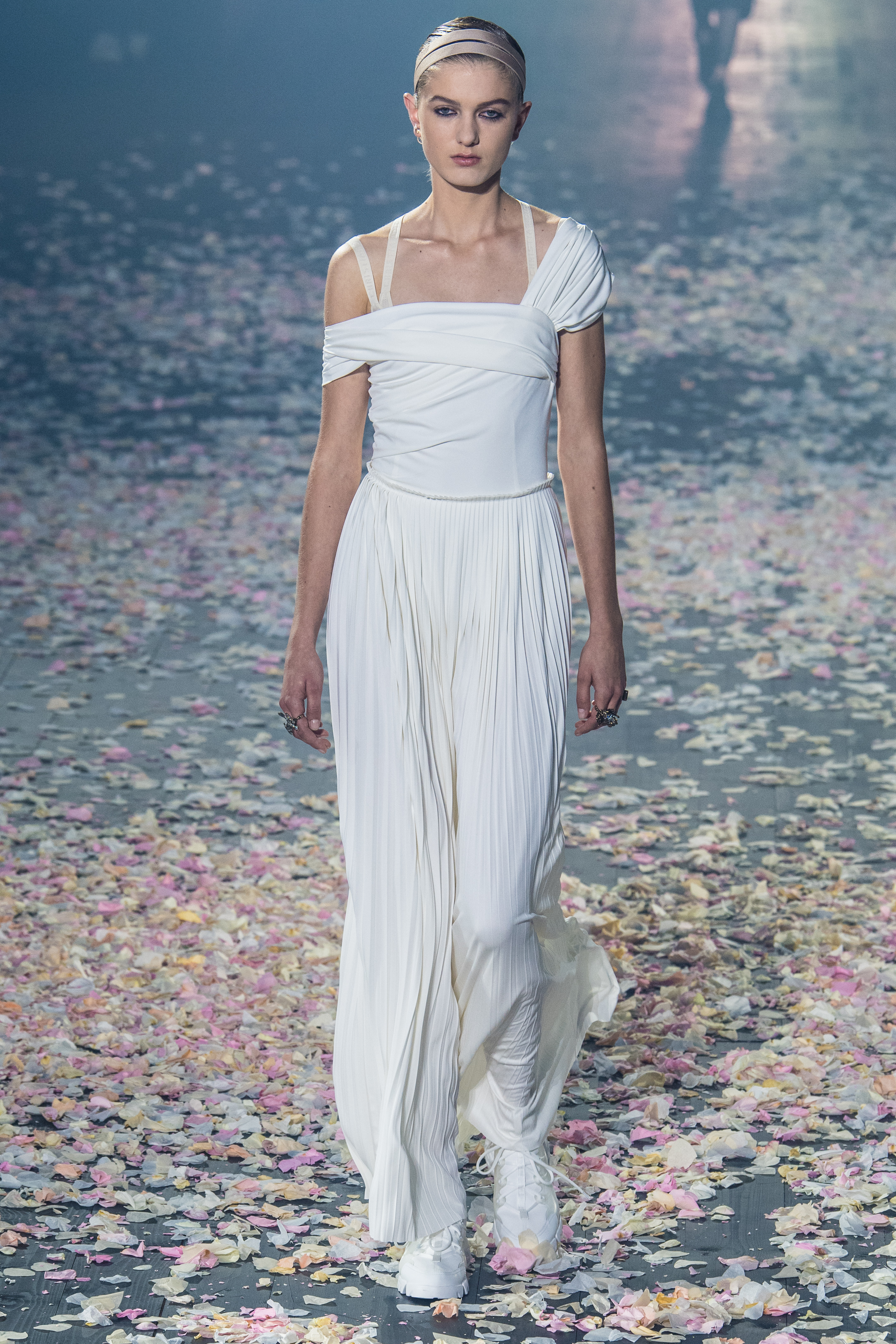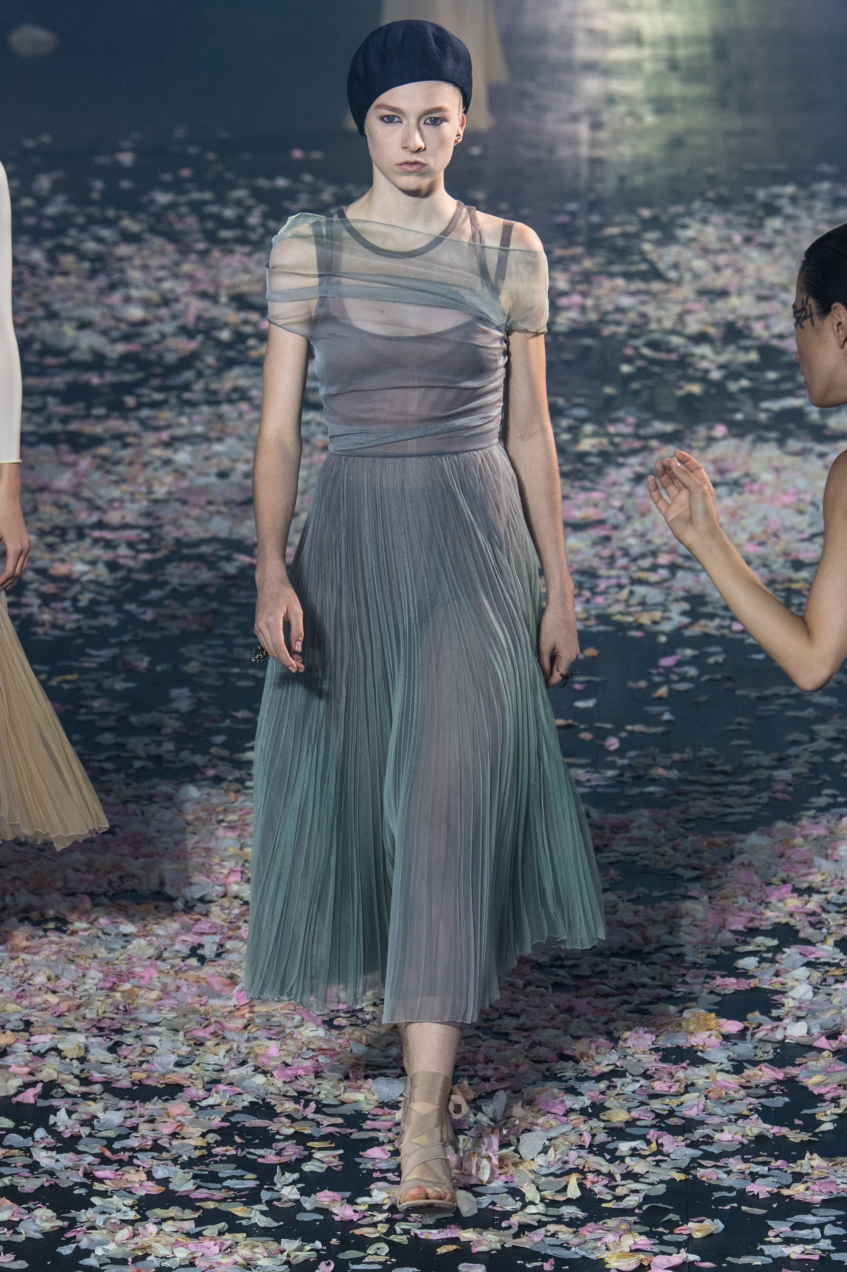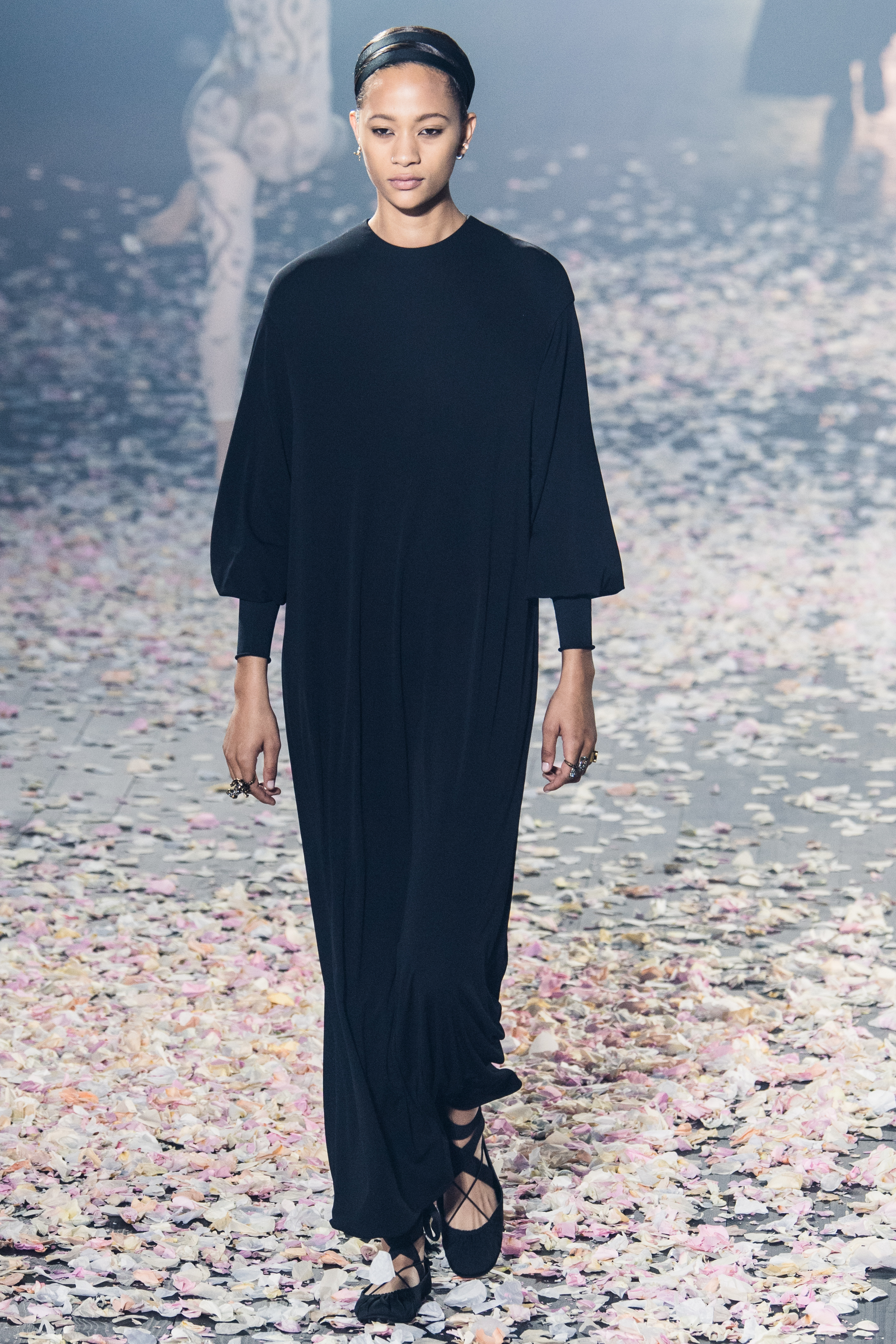 Το απόγευμα της Δευτέρας, λοιπόν, παρουσίασε και τη συλλογή της για τον Dior και τη σεζόν Άνοιξη/Καλοκαίρι 2019. O μινιμαλισμός δεν ήταν ποτέ πιο θηλυκός, πιο παραμυθένιος, πιο αέρινος, πιο αιθέριος. Όλα ξεκίνησαν με ένα απόκοσμο setup που θύμιζε κάτι μεταξύ σκοτεινού δάσους και ballet theatre. Από τη μία ατελείωτα κομφετί που έμοιαζαν με ροδοπέταλα και από την άλλη χορευτές και χορεύτριες, ντυμένοι με ολόσωμα bodiesμε ένα απροσδιόριστο σχέδιο σαν αφηρημένη art nouveau. Παρακολουθώντας τις κινήσεις τους μέσα στο θολό τοπίο ένιωθες σαν να ονειρεύεσαι.