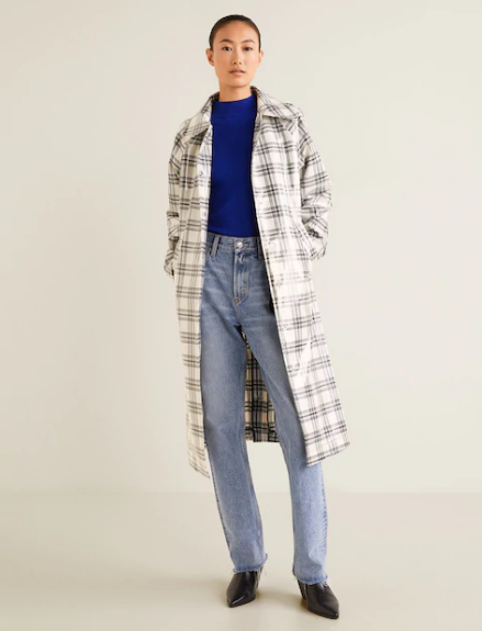 καρό καμπαρντίνα με ύφασμα αδιάβροχου, Mango
