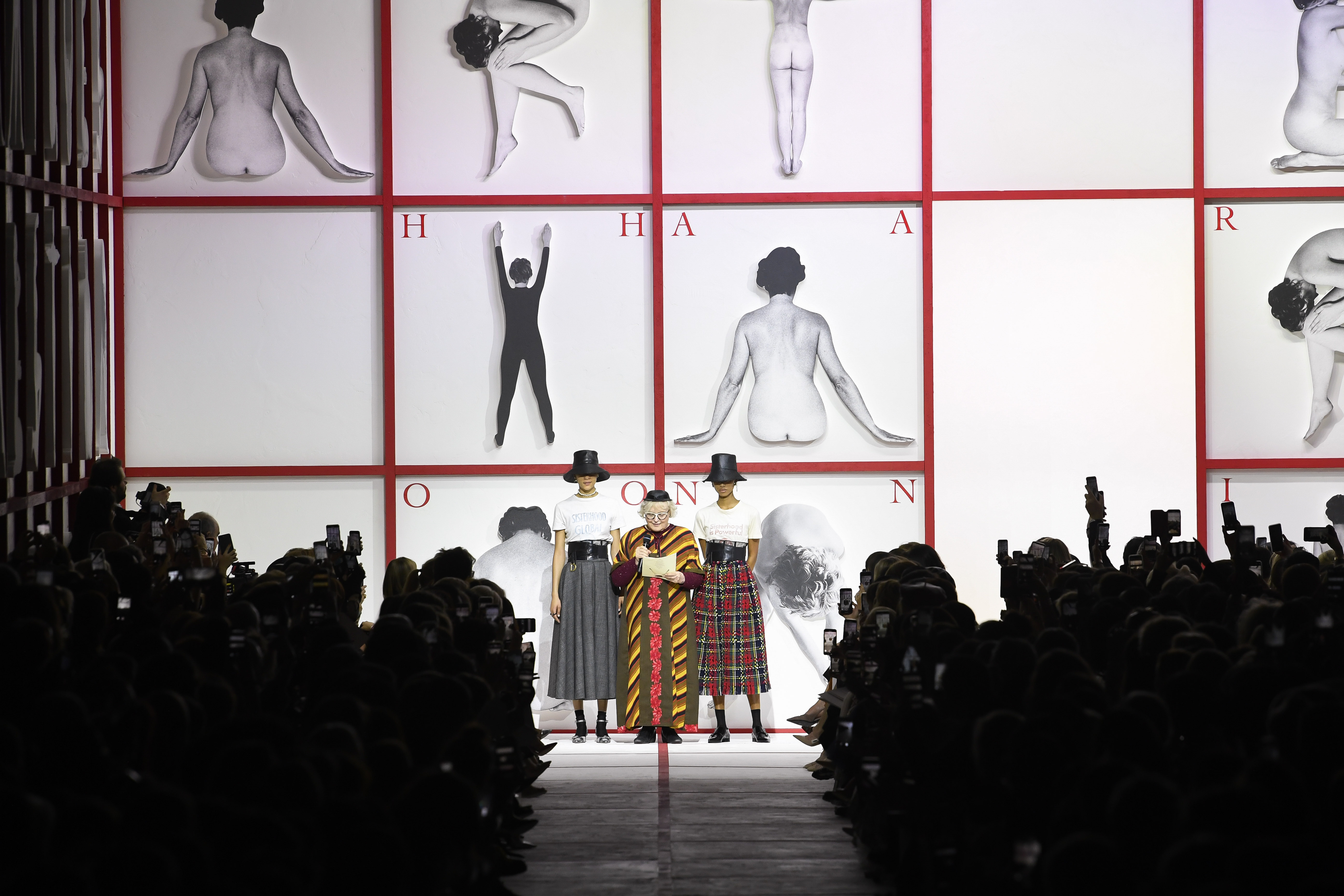 Να πούμε τέλος ότι από την αρχή κιόλας της πασαρέλας της μας έδειξε το νέο viral κομμάτι της συλλογής, ένα T-shirt (που ήδη έχει λίστα αναμονής για παραγγελίες) το οποίο γράφει "Sisterhood Global". Μας θύμισε ότι επιμένει στο women empowerment ακόμα και  όταν χρησιμποιεί σαν αναφορά το New Look, τη σιλουέτα που από πολλούς κατηγορήθηκε ότι καταπιέζει τις γυναίκες και κάθε άλλο παρά φεμινιστικό χαρακτήρα έχει. Σε κάθε περίπτωση, η Maria Grazia Chiuri, έχει καταφέρει στη μικρή θητεία της στον Dior να επαναπροσδιορίσει  το στιλ του οίκου και να το κάνει έντονα αναγνωρίσιμο.  Ακόμα και αν δεν στο πει κανείς, βλέποντάς το ξέρεις ότι είναι Dior. Σημαντικό για τα μόλις δύο χρόνια της στο τιμόνι της καλλιτεχνικής διεύθυνσης, δε νομίζεις;