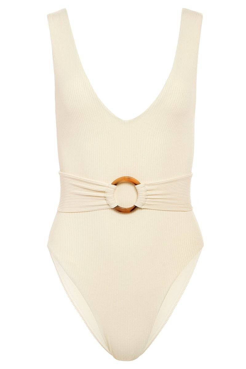 Σε off-white απόχρωση, με άνοιγμα στην πλάτη και το στήθος, το συγκεκριμένο κομμάτι ανήκει στο brand Montce και μπορείς να το βρεις στο montce.com. Αξίζει να αναφέρουμε πως πρόκειται για μία stylish αγορά που σίγουρα δε θα μετανιώσεις, καθώς το cut του ταιριάζει σε κάθε σωματότυπο, ενώ η ζώνη τονίζει ακόμη περισσότερο τη μέση για κομψές και θηλυκές εμφανίσεις στην παραλία που σίγουρα δε περνούν απαρατήρητες.