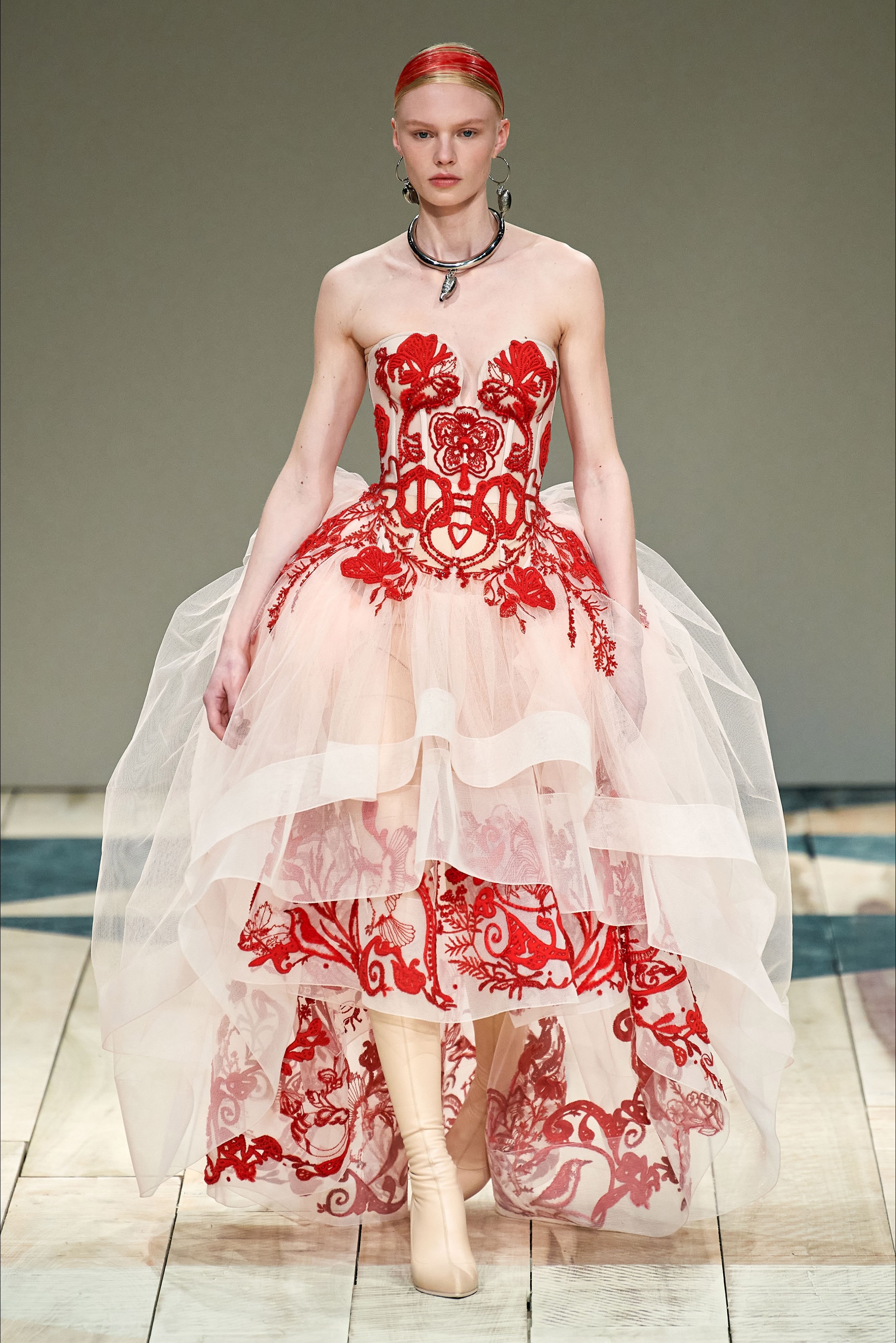 Για τον σχεδιασμό της συλλογής η Βρετανίδα σχεδιάστρια ταξίδεψε με την ομάδα της στην Ουαλία με σκοπό να αντλήσουν έμπνευση από τις παραδοσιακές τεχνικές της περιοχής. Στις σημειώσεις της για το show ανέφερε χαρακτηριστικά: "Η γυναίκα είναι θαρραλέα, τολμηρή, ηρωίδα. Υπάρχει μία αίσθηση προστασίας και άνεσης μέσα στα ρούχα. Οι καρδιές συμβολίζουν την ενότητα και την στήριξη". Η Sarah Burton τίμησε τις γυναίκες και την διαφορετικότητα με τον καλύτερο τρόπο. Στο show περπάτησαν τα plus size μοντέλα Paloma Elsesser και Jill Kortleve φορώντας τις μοναδικές δημιουργίες του οίκου.