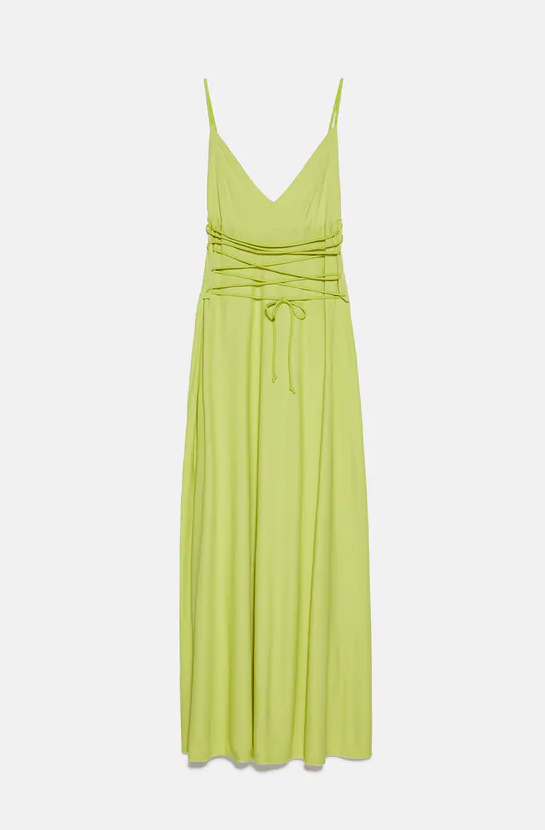 Φόρεμα με λεπτές τιράντες και κορδόνια στη μέση 15,99 ευρώ, zara.com