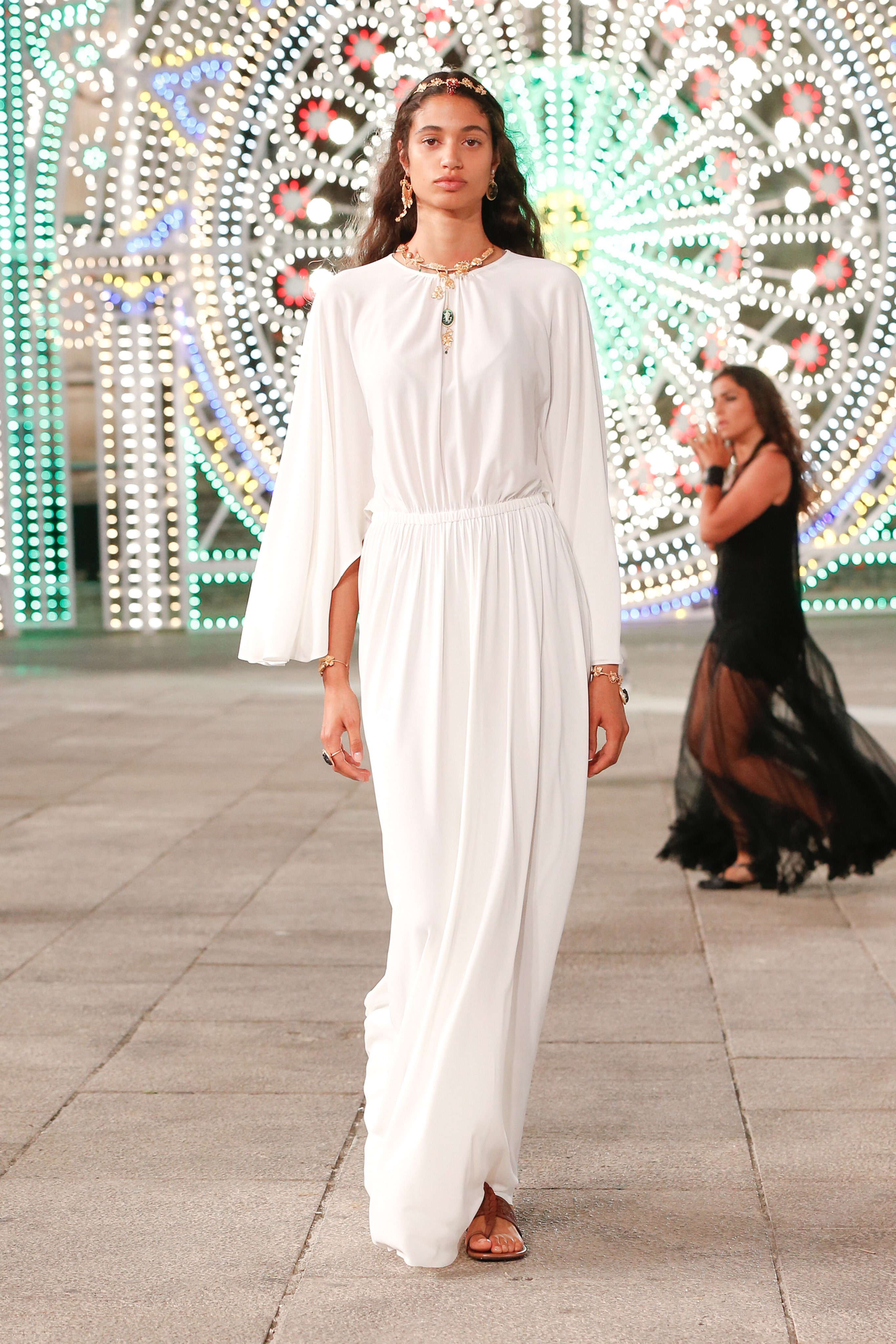 Συνολικά είχαμε την ευκαιρία να παρακολουθήσουμε 90 διαφορετικές εμφανίσεις αλλά απόλυτα εναρμονισμένες μεταξύ τους. Οι επιρροές από την δεκαετία των 70's και τον ιταλικό νότο ήταν έντονες όπως για παράδειγμα τα μαντήλια που φορούσαν στο κεφάλι τα μοντέλα, τα λευκά φορέματα με δαντέλα και συνδυασμένα με δερμάτινους κορσέδες καθώς και οι μάξι φούστες που έμοιαζαν με υφαντά.