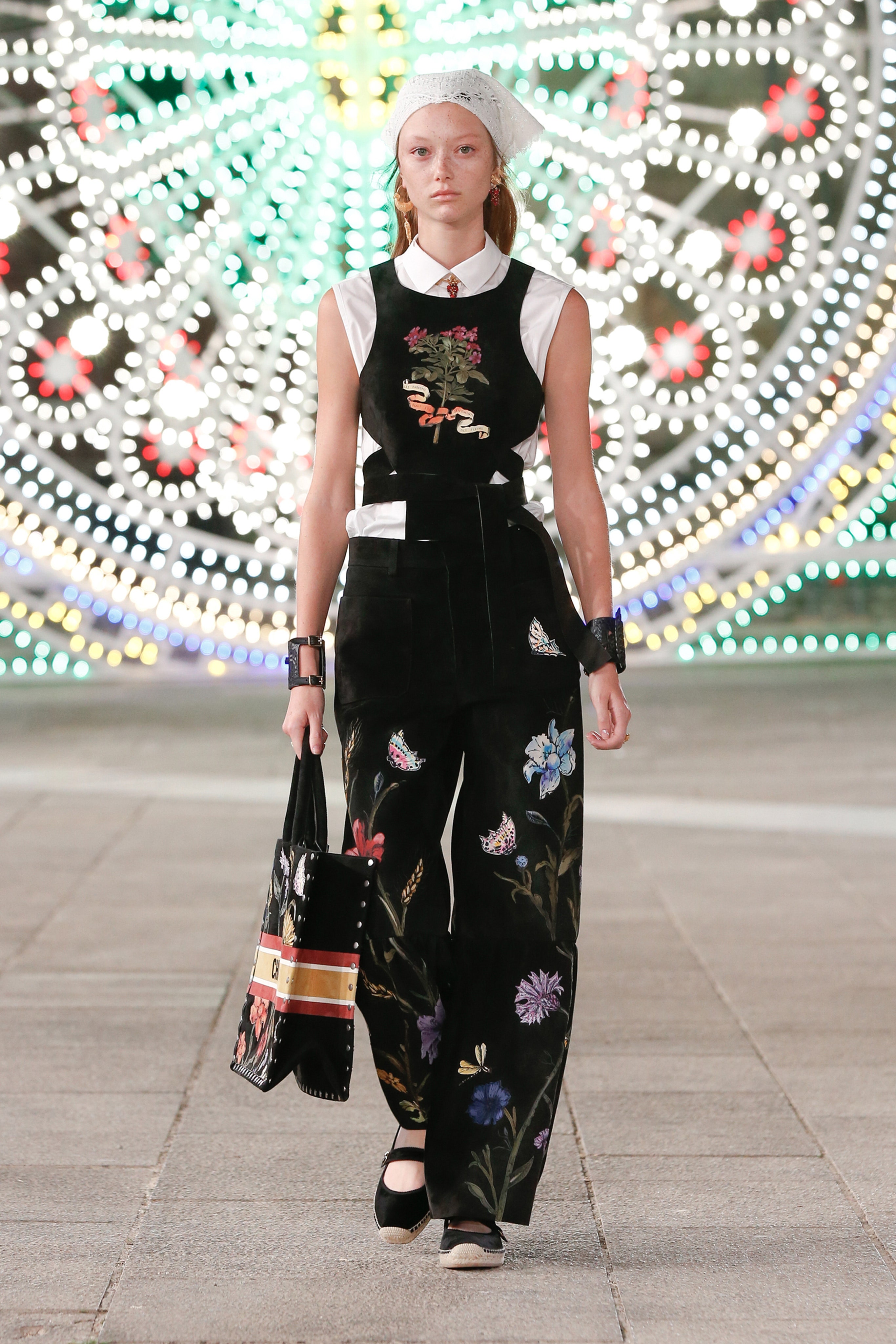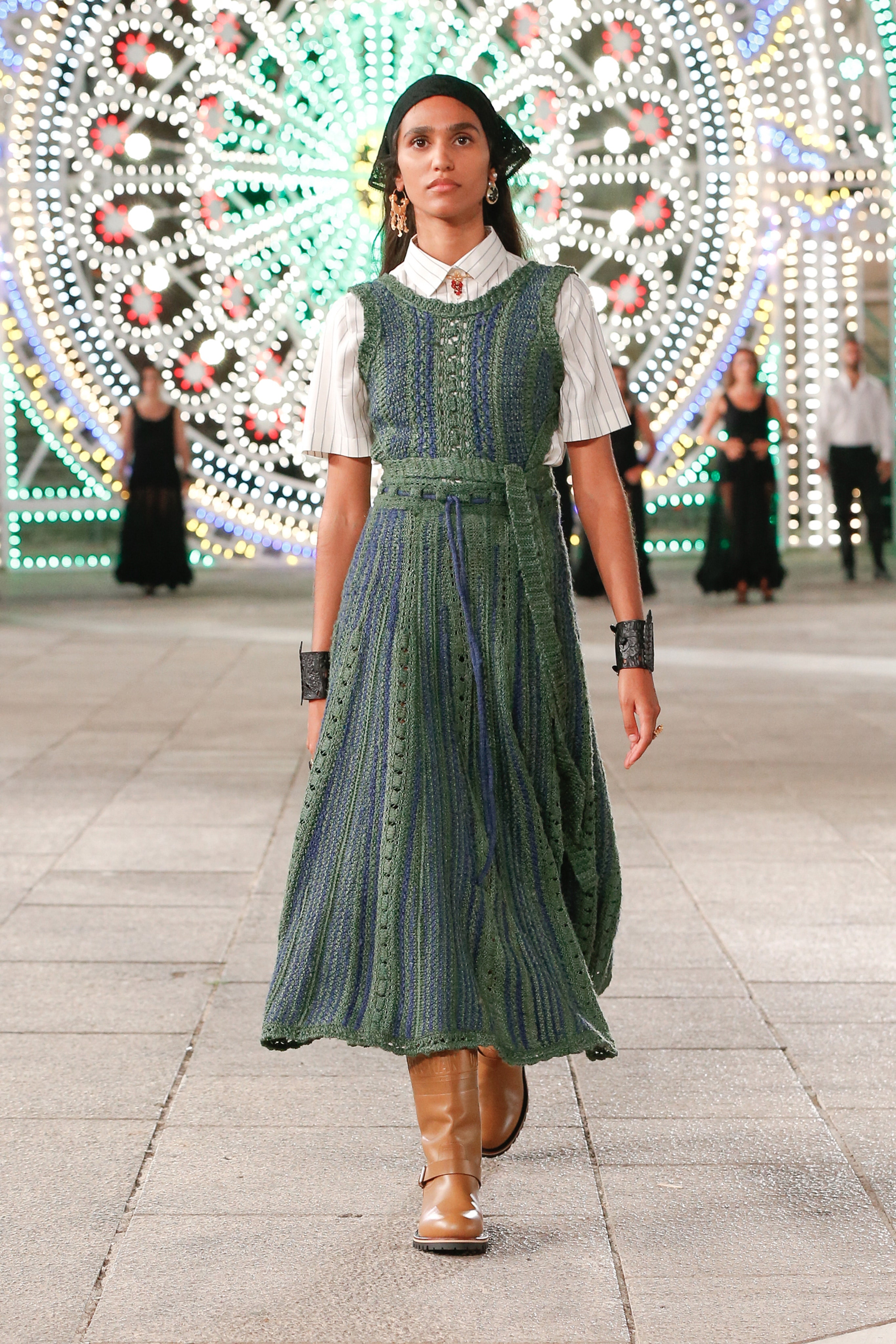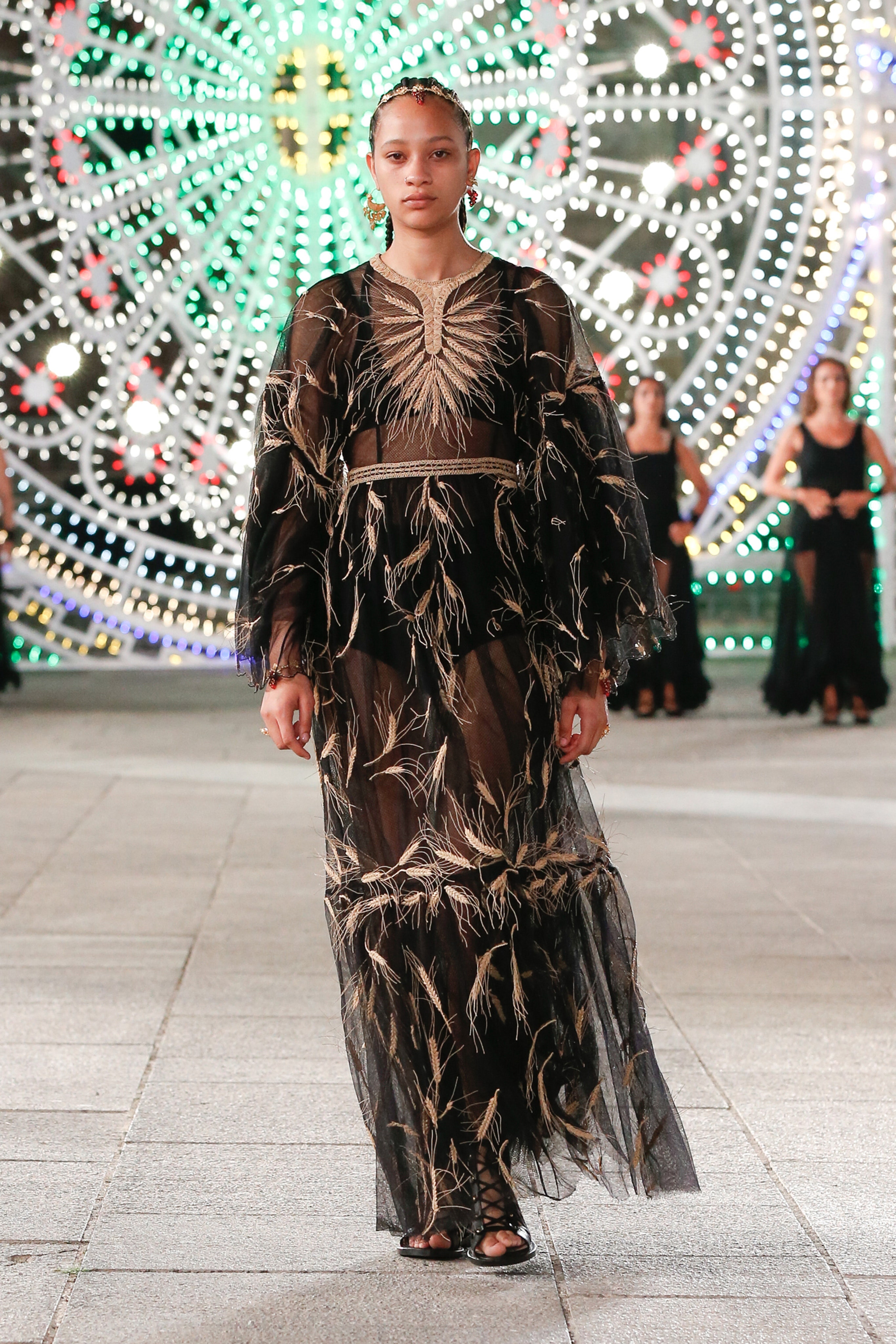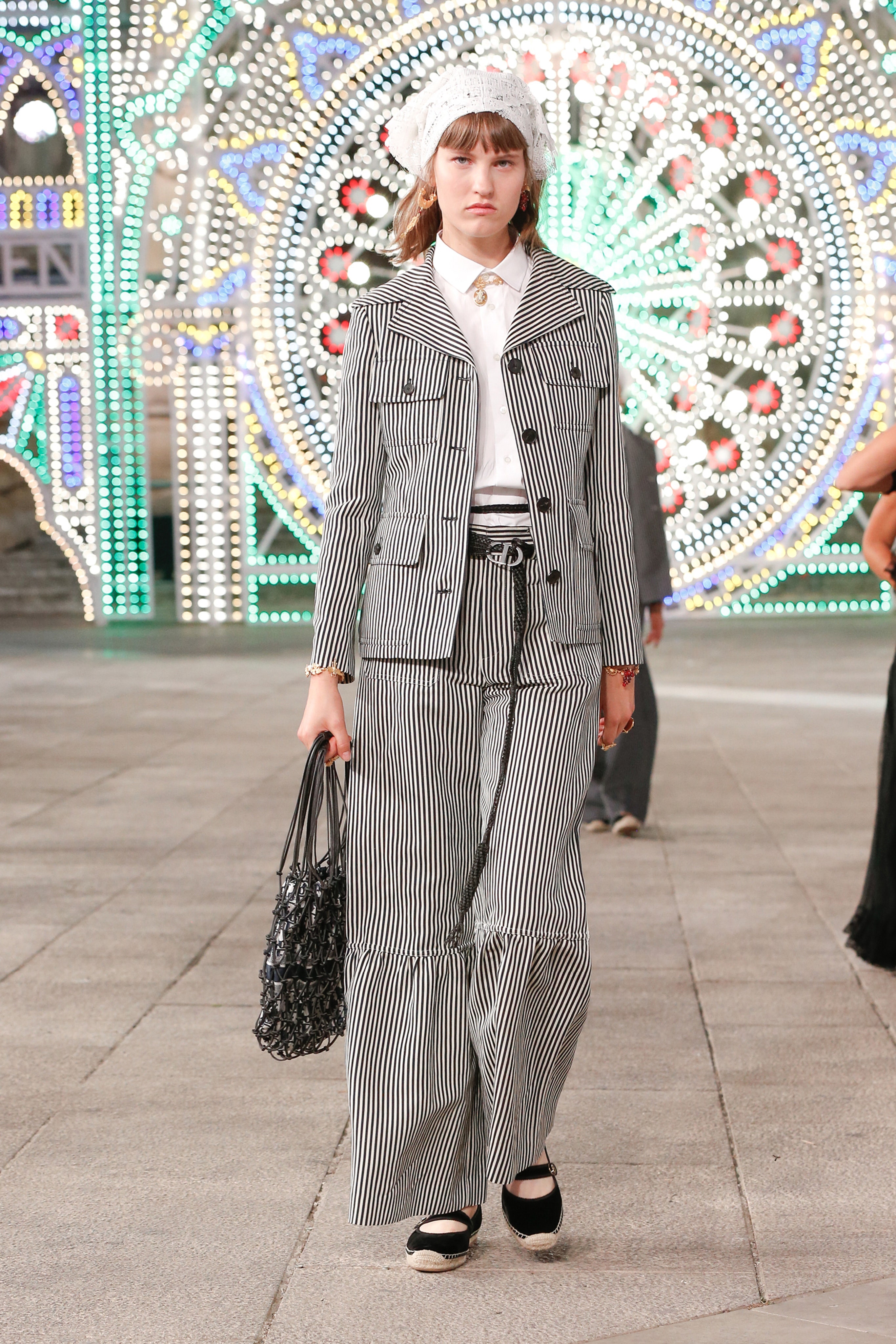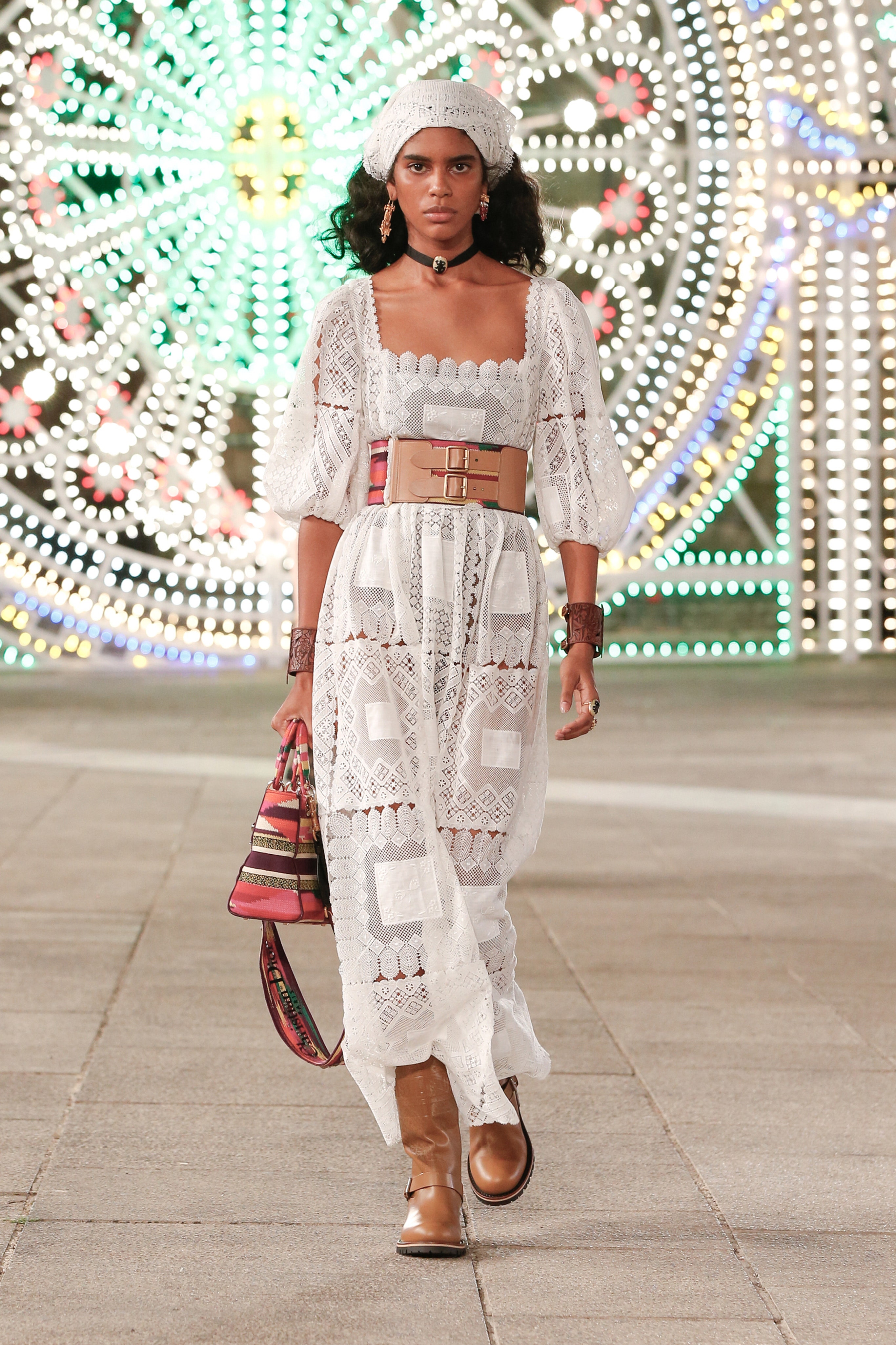 Η Chiuri μάς ταξίδεψε για λίγο στην Puglia, έναν τόπο με ιδιαίτερη συναισθηματική αξία για την ίδια και συγκεκριμένα στο Lecce. " Για μένα ήταν απλά όνειρο να βρεθώ στην Puglia, το μέρος όπου γεννήθηκε ο πατέρας μου. Ήθελα να μιλήσω για την δική μου κληρονομιά και το πώς αυτή με επηρέασε στη μόδα", είχε δηλώσει σε μία συνέντευξή της. Με τη βοήθεια λοιπόν της εικαστικού Marinella Senatore η πλατεία του καθεδρικού ναού στο Lecce φωτίστηκε με πολύχρωμες εγκαταστάσεις φωτός (γνωστές και ως luminarie) οι οποίες σχημάτιζαν κτίρια με υπέροχη αρχιτεκτονική. Φράσεις που περνούν μηνύματα όπως "Be a builder of unguilt" και "We rise by lifting others" έκλεψαν ξανά την παράσταση - είναι άλλωστε ένα από τα αγαπημένα μοτίβα της Chiuri και θύμισαν έντονα μία αντίστοιχη συνεργασία της με την Claire Fontaine.