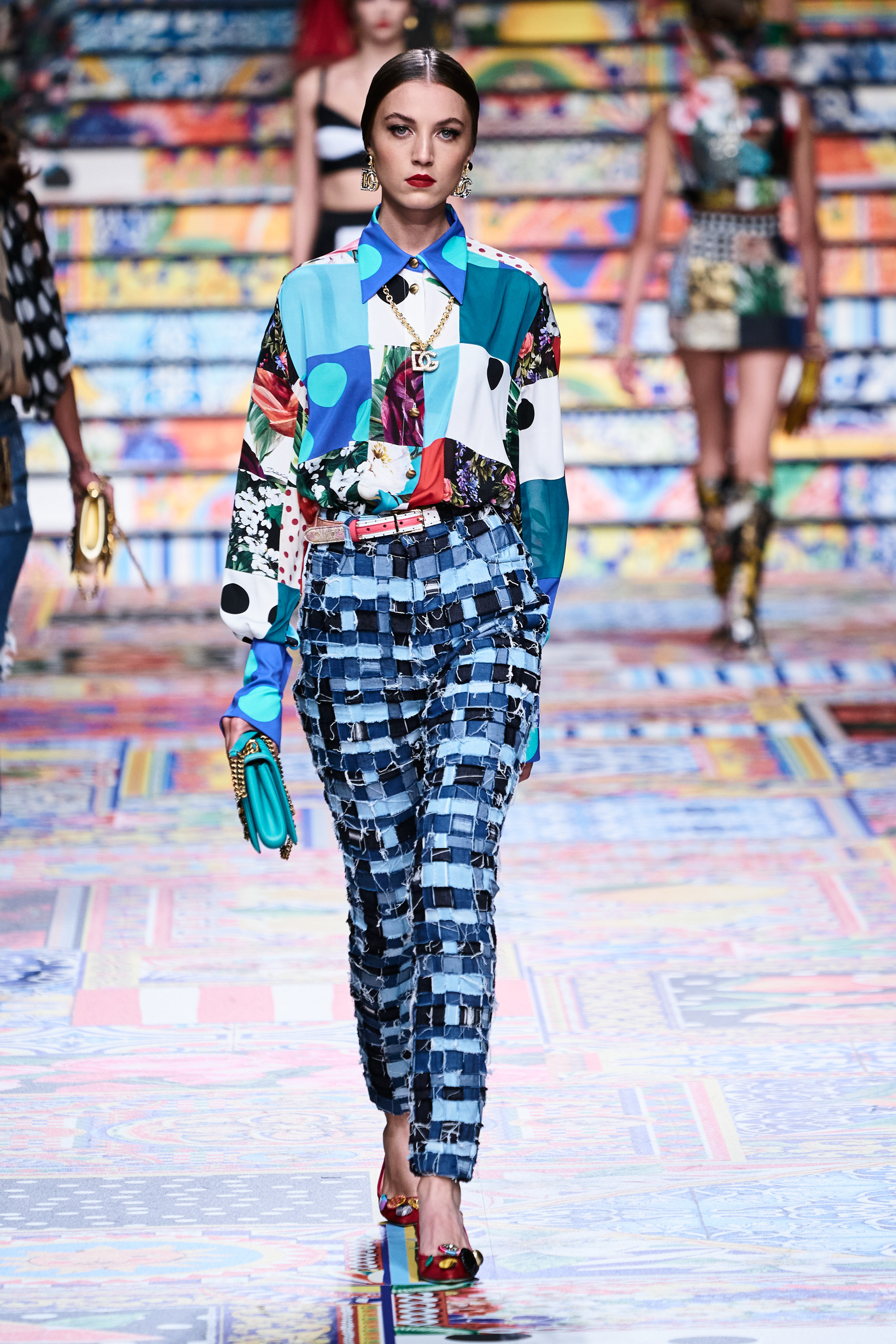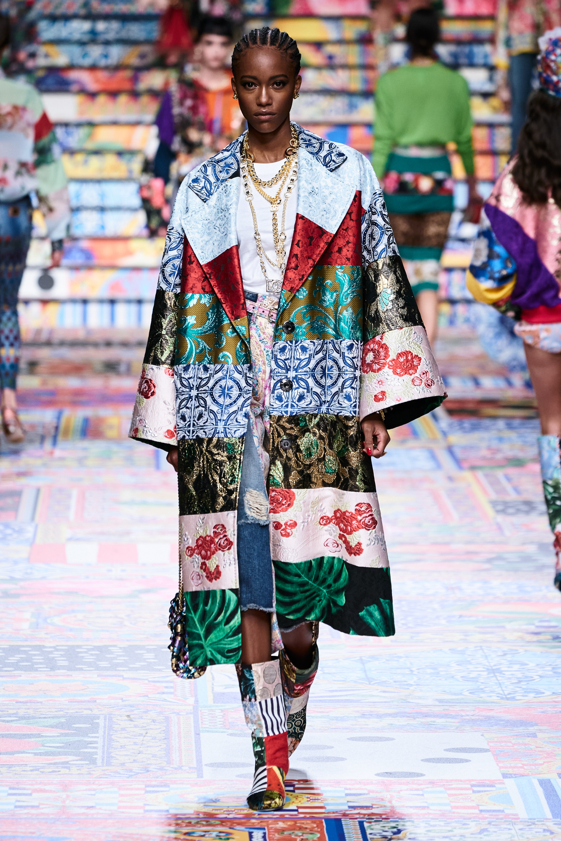Η πρώτη μέρα της εβδομάδας μόδας του Μιλάνου για τη σεζόν Άνοιξη/Καλοκαίρι 2021 έκλεισε με την επίδειξη μόδας των Dolce & Gabbana. Γεμάτη χρώματα, ζωντάνια και ενέργεια η συλλογή ήταν μια ωδή στη χαρά από πάτσγουρκ υφάσματα και εντυπωσιακά αξεσουάρ. Ακόμα κι η πασαρέλα, αλλά και τα καθίσματα των καλεσμένων ήταν "ντυμμένα" σε εντυπωσιακά χρώματα και σχέδια: