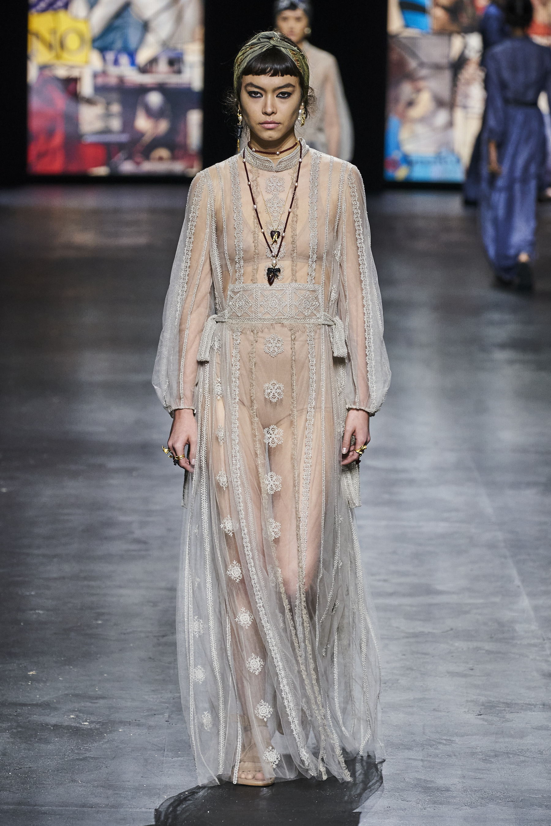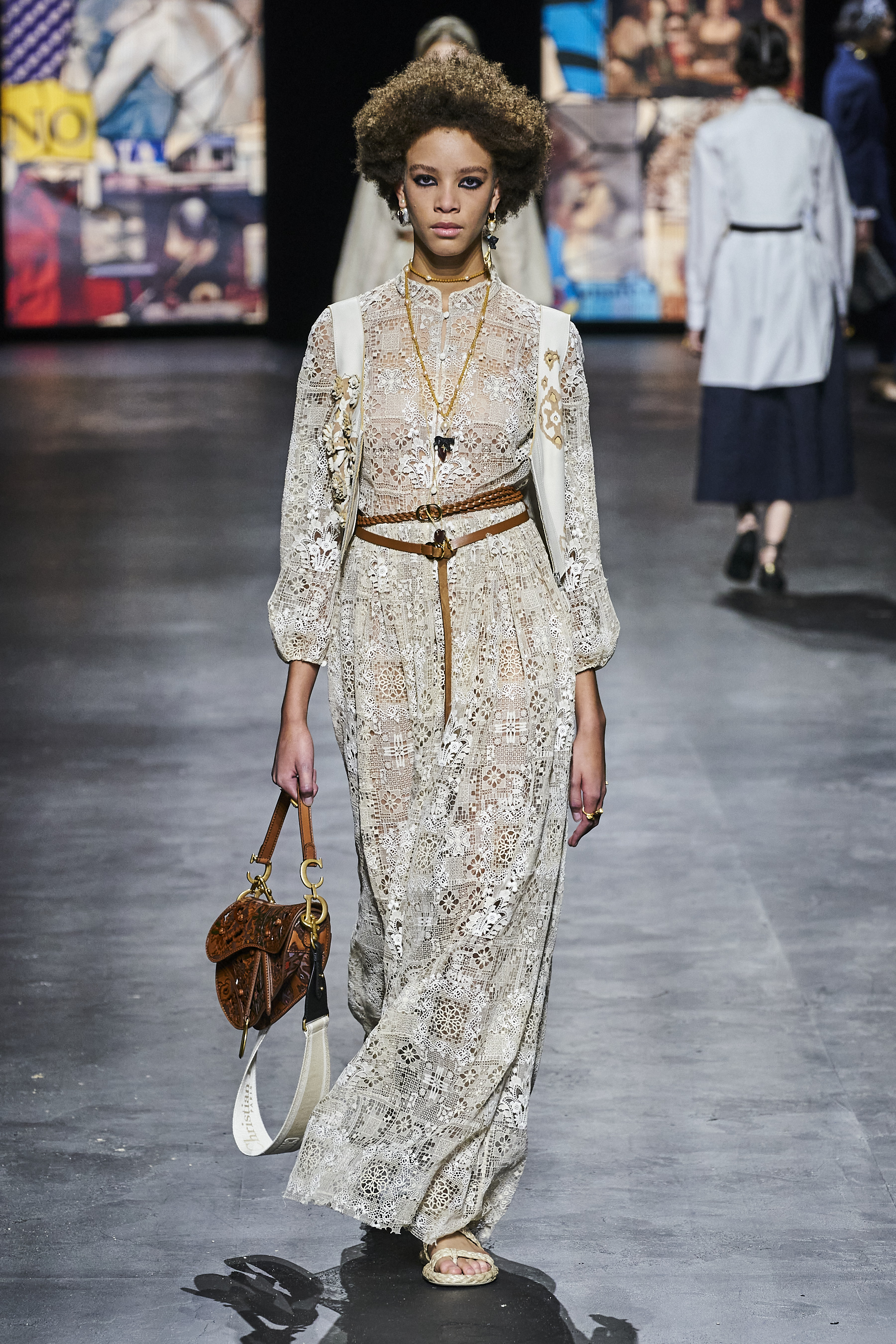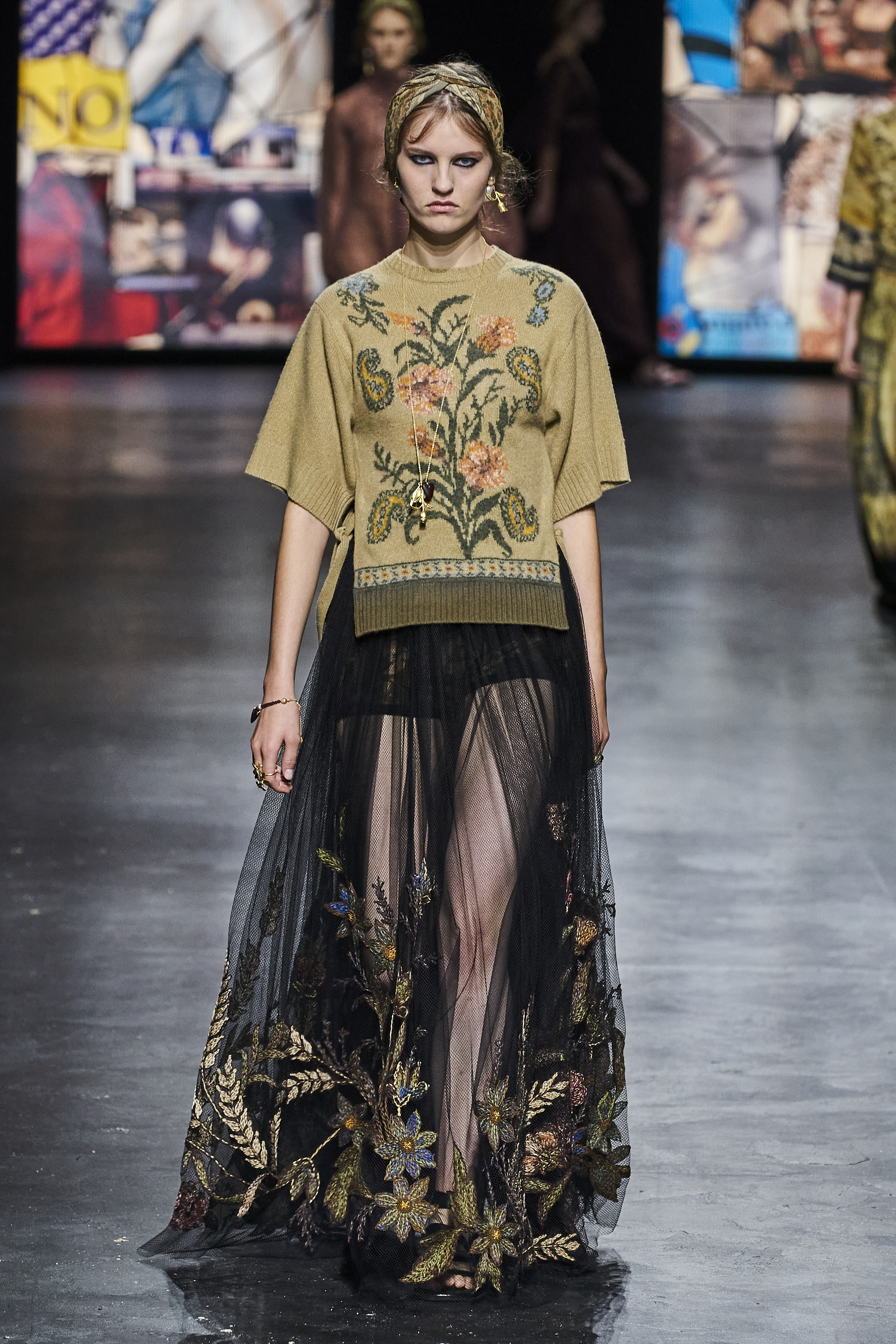 H Chiuri τόνισε το φεμινιστικό μανιφέστο ενώνοντας αυτή τη φορά τις δυνάμεις της με την Ιταλίδα visual artist Lucia Marcucci, γνωστή για τα μοναδικά κολλάζ της με θέμα την γυναίκα. Το show που πραγματοποιήθηκε στο Jardin des Tuileries στο Παρίσι και μεταδόθηκε μέσω live streaming ξεκίνησε με ένα short film της Alina Marrazzi στο οποίο ο θεατής είχε τη δυνατότητα να μάθει περισσότερα για τη ζωή της καλλιτέχνιδας. Για τις ανάγκες του show η Marcucci παραχώρησε μερικά από τα έργα της τα οποία σχεδίασε το 2011 και είδαν τώρα για πρώτη φορά το φως της δημοσιότητας. Πολύχρωμα κολλάζ που θύμιζαν βιτρό καθεδρικών ναών δημιούργησαν την τέλεια αντίθεση με το υπόλοιπο dark σκηνικό. Ένας καθεδρικός ναός της ποίησης όπως ακριβώς σημείωσε ο οίκος σε μία από τις αναρτήσεις του στο Instagram με μία ομάδα από γυναίκες μουσικούς να ψέλνουν όση ώρα τα μοντέλα περπατούσαν στην πασαρέλα.