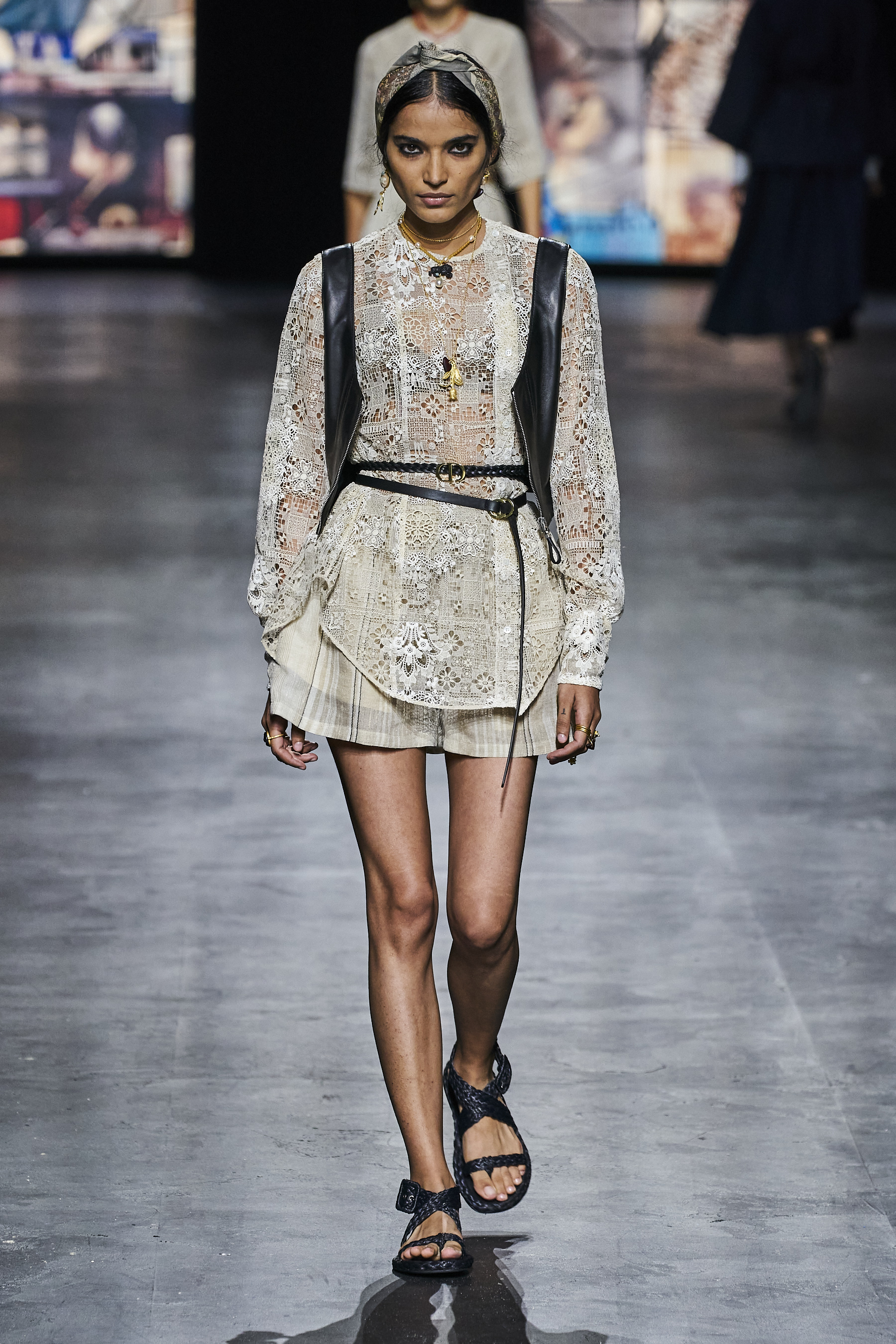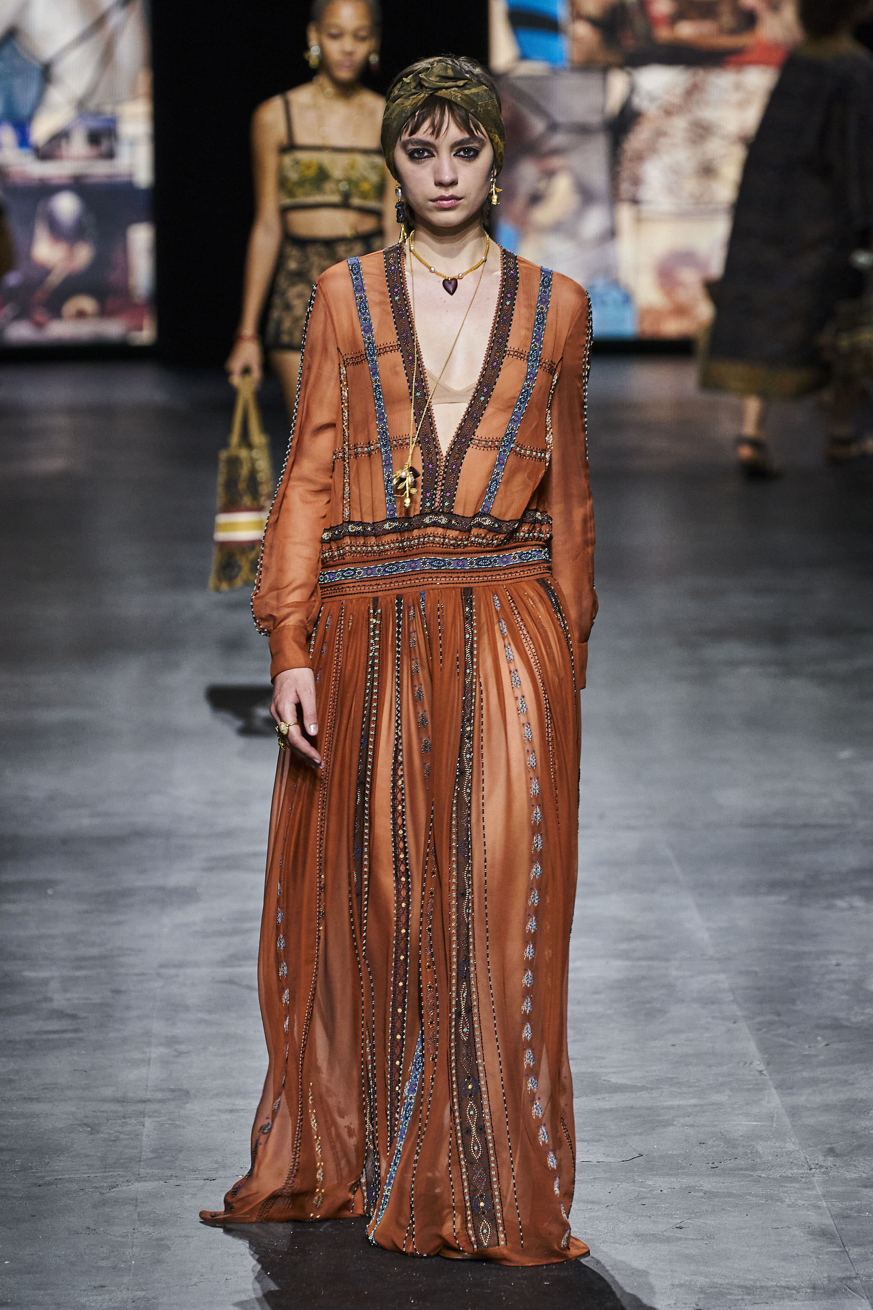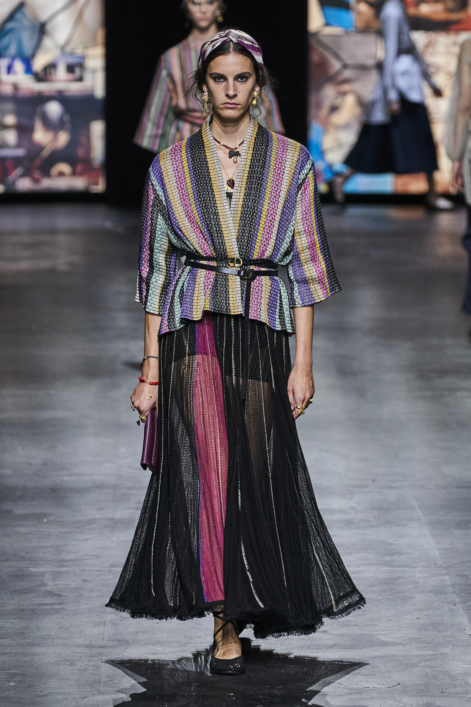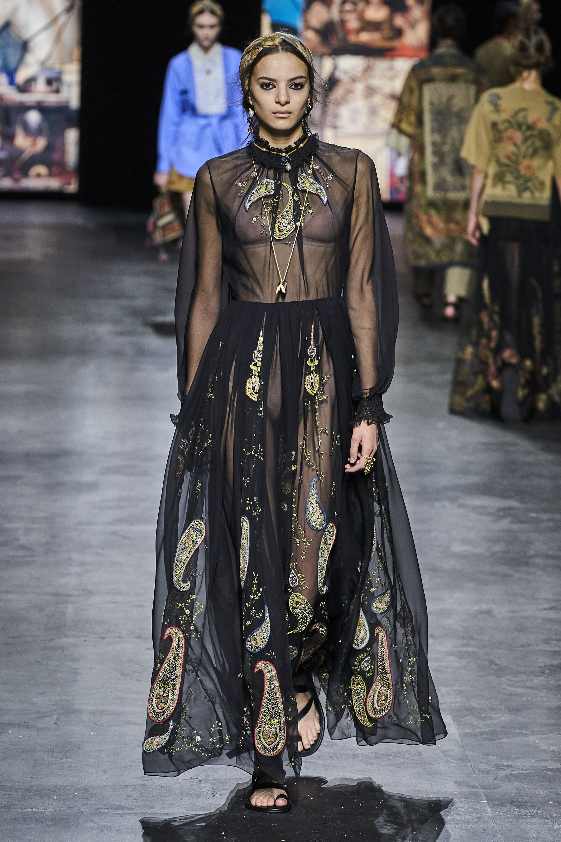H Chiuri τόνισε το φεμινιστικό μανιφέστο ενώνοντας αυτή τη φορά τις δυνάμεις της με την Ιταλίδα visual artist Lucia Marcucci, γνωστή για τα μοναδικά κολλάζ της με θέμα την γυναίκα. Το show που πραγματοποιήθηκε στο Jardin des Tuileries στο Παρίσι και μεταδόθηκε μέσω live streaming ξεκίνησε με ένα short film της Alina Marrazzi στο οποίο ο θεατής είχε τη δυνατότητα να μάθει περισσότερα για τη ζωή της καλλιτέχνιδας. Για τις ανάγκες του show η Marcucci παραχώρησε μερικά από τα έργα της τα οποία σχεδίασε το 2011 και είδαν τώρα για πρώτη φορά το φως της δημοσιότητας. Πολύχρωμα κολλάζ που θύμιζαν βιτρό καθεδρικών ναών δημιούργησαν την τέλεια αντίθεση με το υπόλοιπο dark σκηνικό. Ένας καθεδρικός ναός της ποίησης όπως ακριβώς σημείωσε ο οίκος σε μία από τις αναρτήσεις του στο Instagram με μία ομάδα από γυναίκες μουσικούς να ψέλνουν όση ώρα τα μοντέλα περπατούσαν στην πασαρέλα.