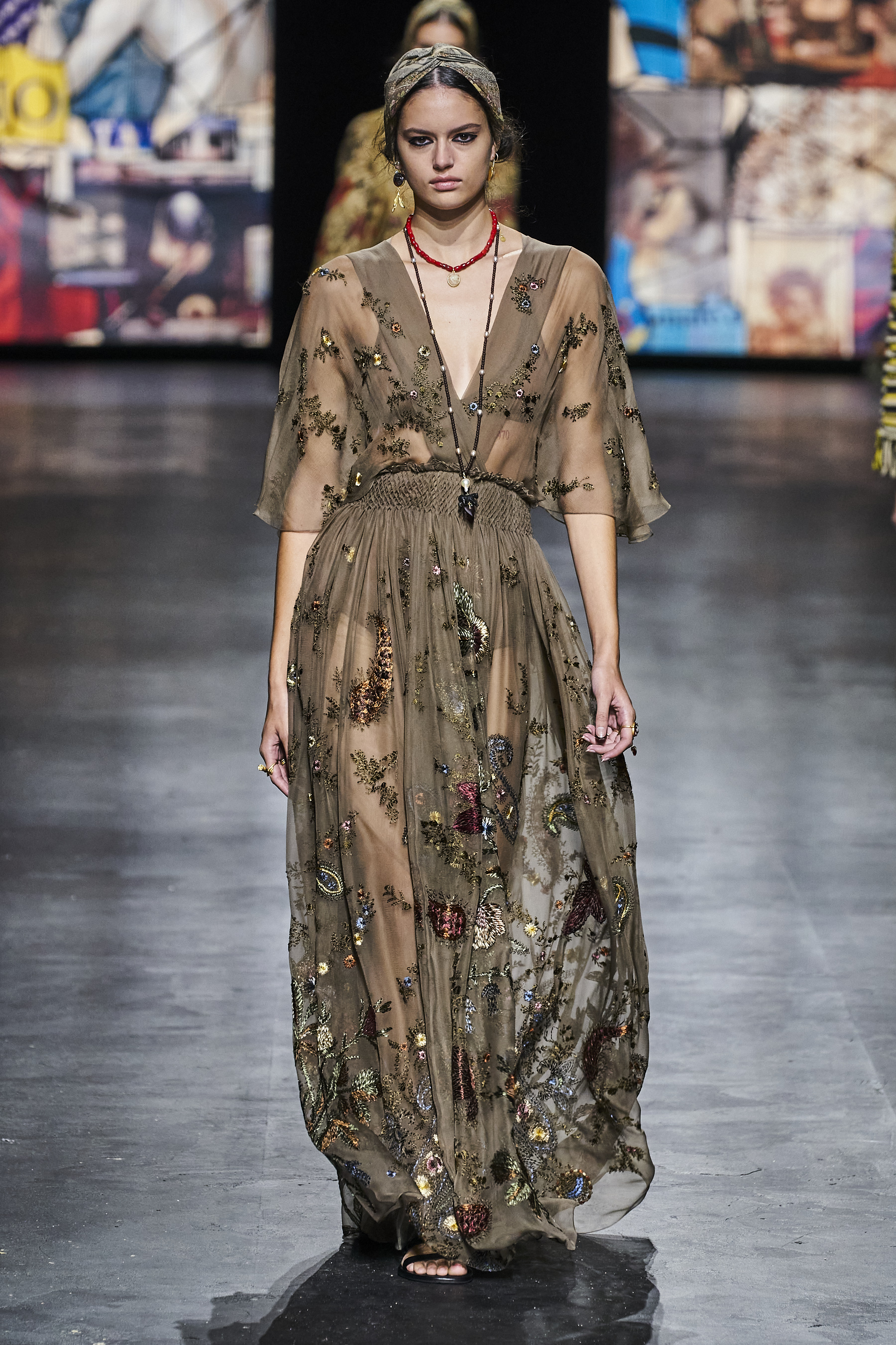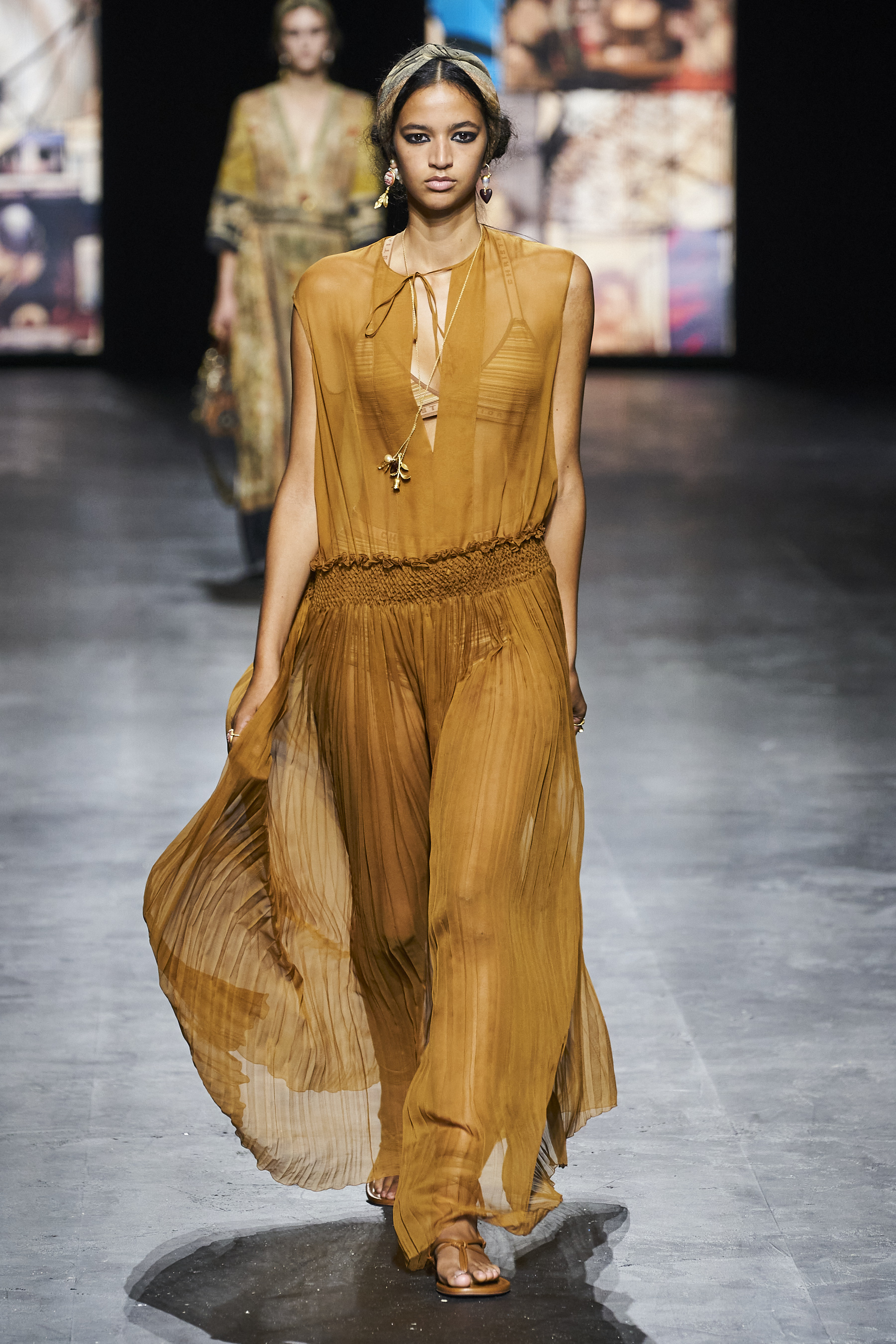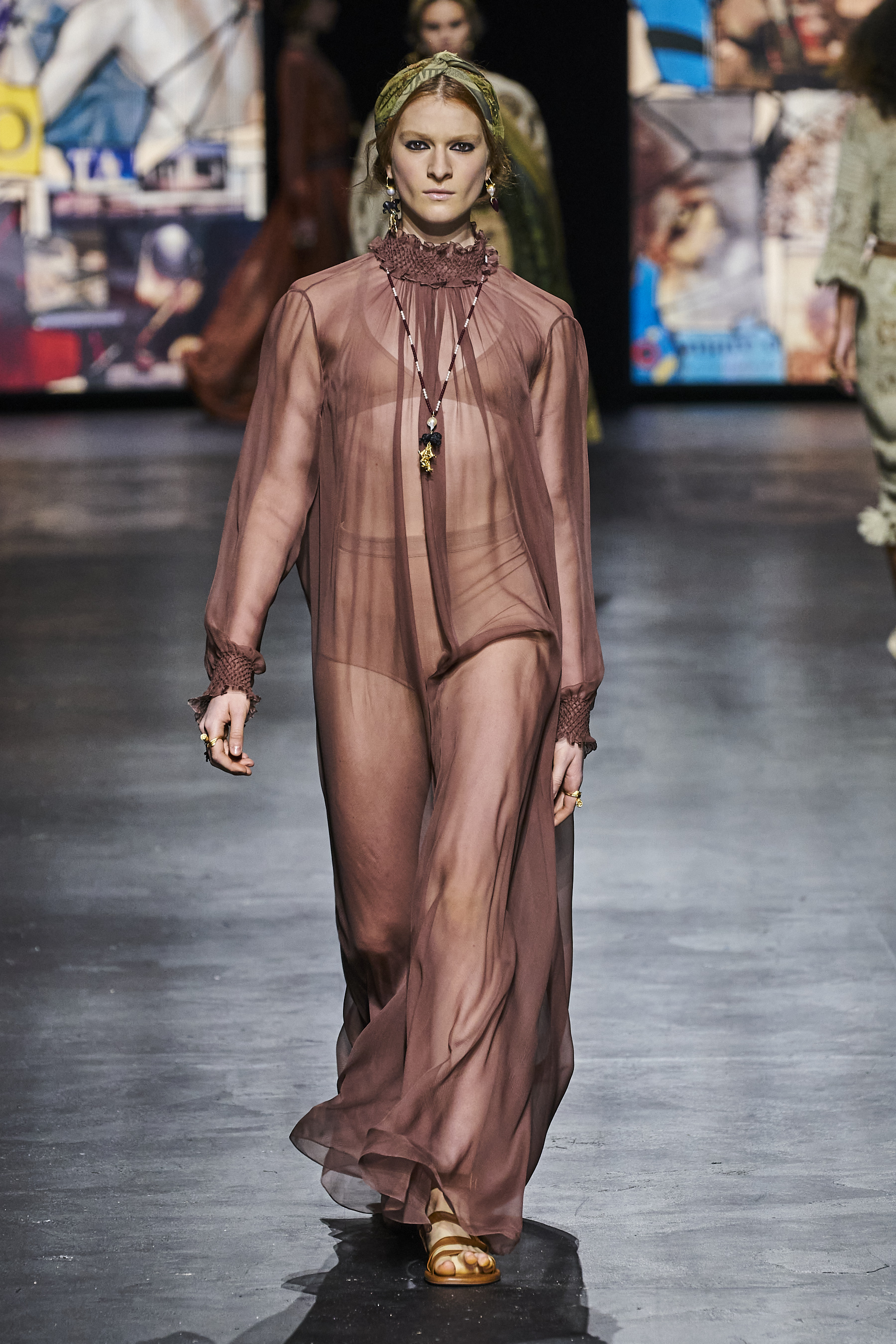 Σε αντίθεση με τις μέχρι τώρα συλλογές της, η Chiuri προτίμησε να αφήσει για λίγο στην άκρη τον δυναμισμό και τις αυστηρές γραμμές αφήνοντας να φανεί μία πιο χαλαρή και ανέμελη πλευρά της. Ίσως αρκετά επηρεασμένη από την "νέα πραγματικότητα" η δική της εκδοχή για την ερχόμενη Άνοιξη βασίστηκε σε μία ήσυχη χρωματική παλέτα (με τις αποχρώσεις του λαδί, του μπλε, του λευκού και της τερακότας να κυριαρχούν) με απλά, γήινα και αέρινα ρούχα. Ημιδιάφανα φορέματα κεντημένα με ντελικάτα λουλούδια, πλεκτά και κάπες με λαχούρια, άνετες denim παντελόνες, oversized πουκάμισα, πανωφόρια με tie-dye μοτίβα και σοφιστικέ full skirts αποτέλεσαν τα κυριότερα ρούχα της ready-to-wear συλλογής.
