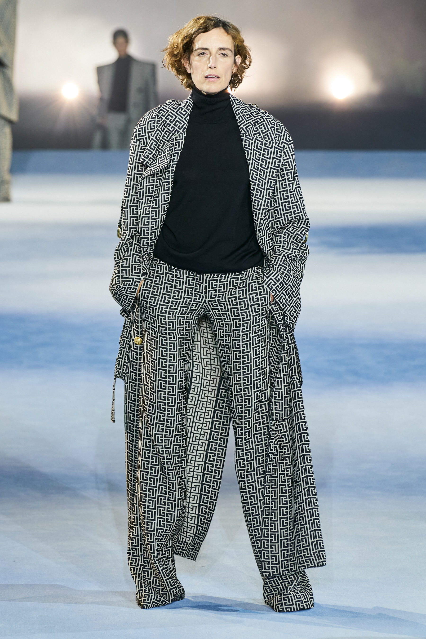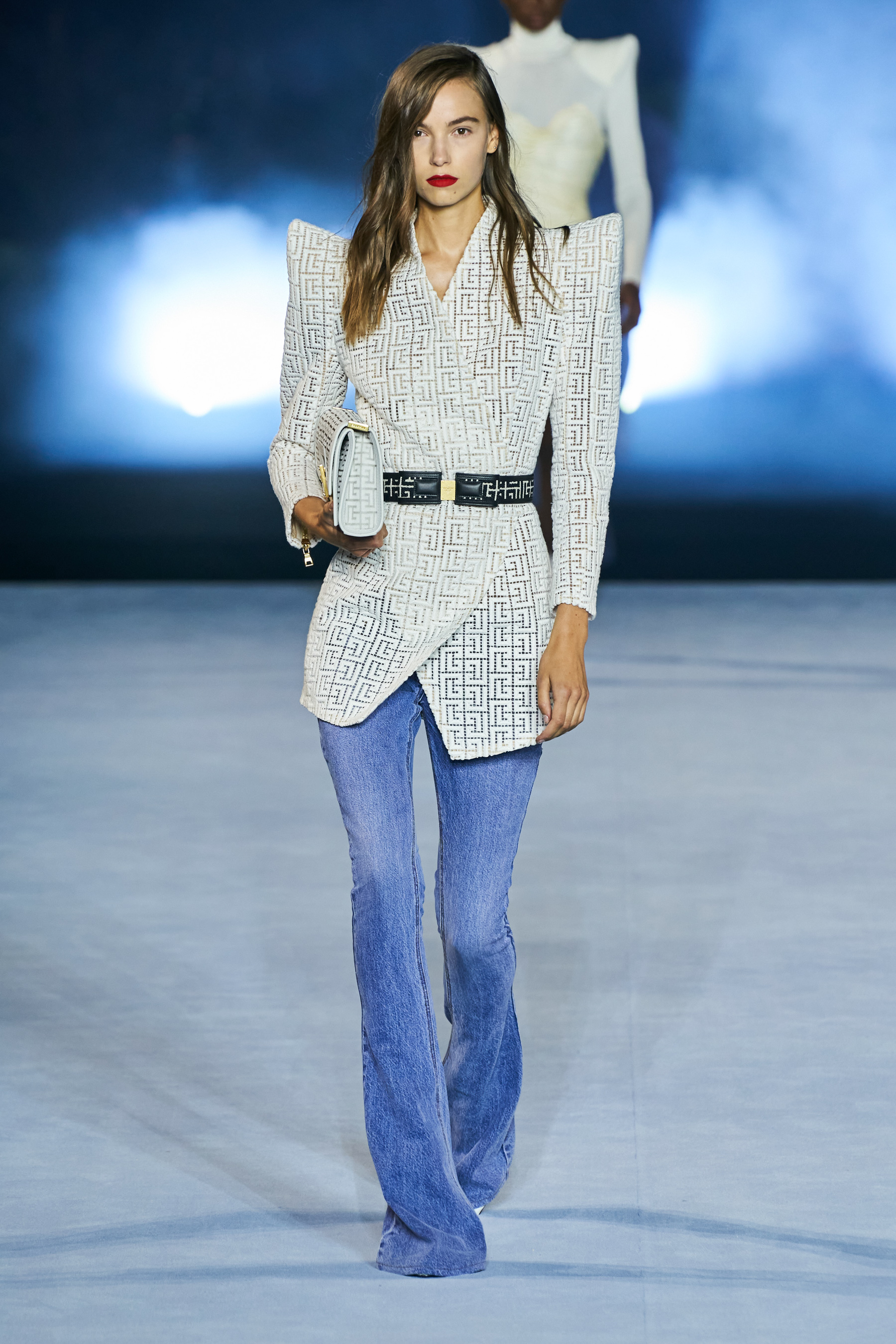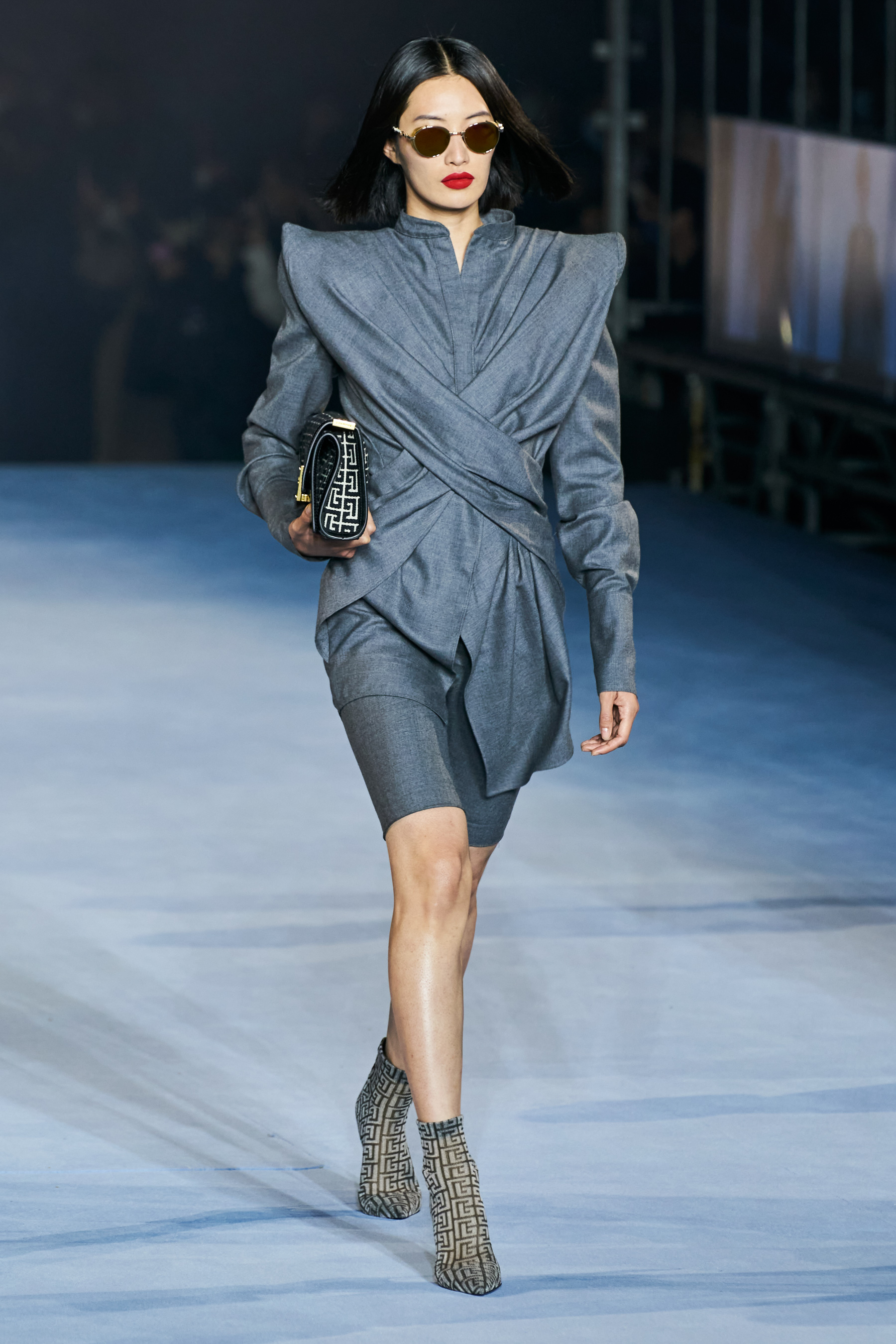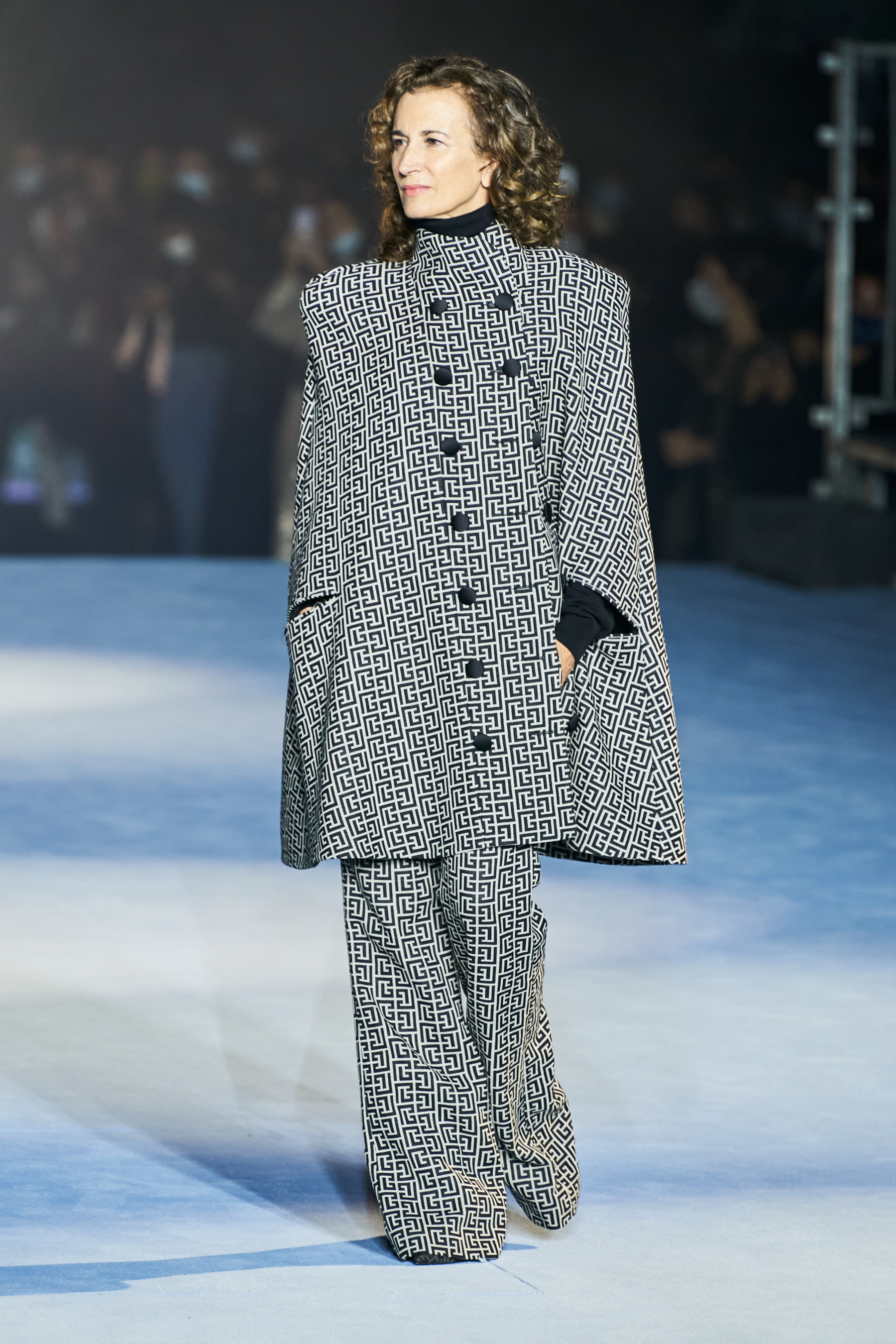 Το catwalk του Balmain, που πραγματοποιήθηκε στο Jardin des Plantes και μεταδόθηκε σε live streaming από το σάιτ, το Instagram, το TikTok, το Facebook, του Youtube, ακόμα και το Linkedin(!), ξεκίνησε - κόντρα στο τι είθισται - με τον Rousteing να βγαίνει πρώτος στη σκηνή και να παίρνει τη θέση του πάνω σ' ένα σκαμπό. Η συνέχεια ανήκε σε έξι Γαλλίδες - βετεράνους του μόντελινγκ που πραγματοποίησαν ένα μη συμβατικό (στο περπάτημα) ντεφιλέ στη σκηνή φορώντας τις δημιουργίες "Heritage" με τις οποίες ο Rousteing θέλησε να επαναφέρει και να τιμήσει το monogram μοτίβο του οίκου Balmain μέσα από κομψά σύνολα με πανωφόρια με έντονους ώμους, παντελόνες, καμπάνες και μία υπέροχη ολόσωμη φόρμα.