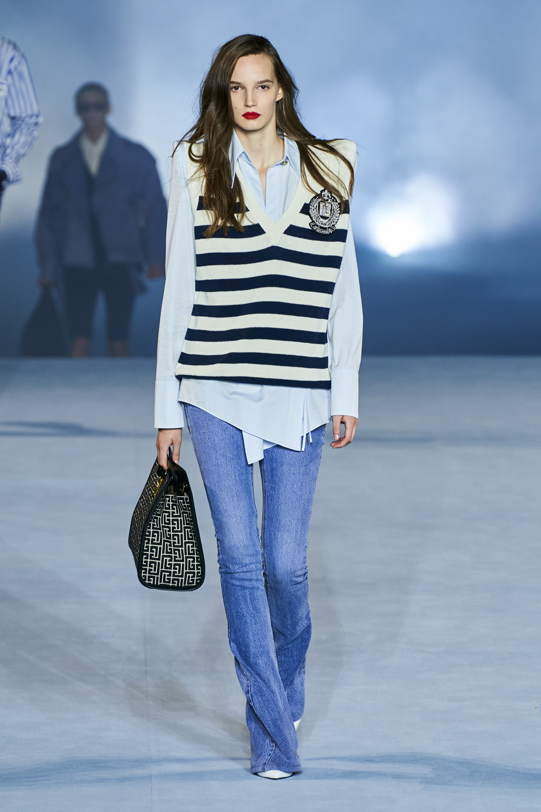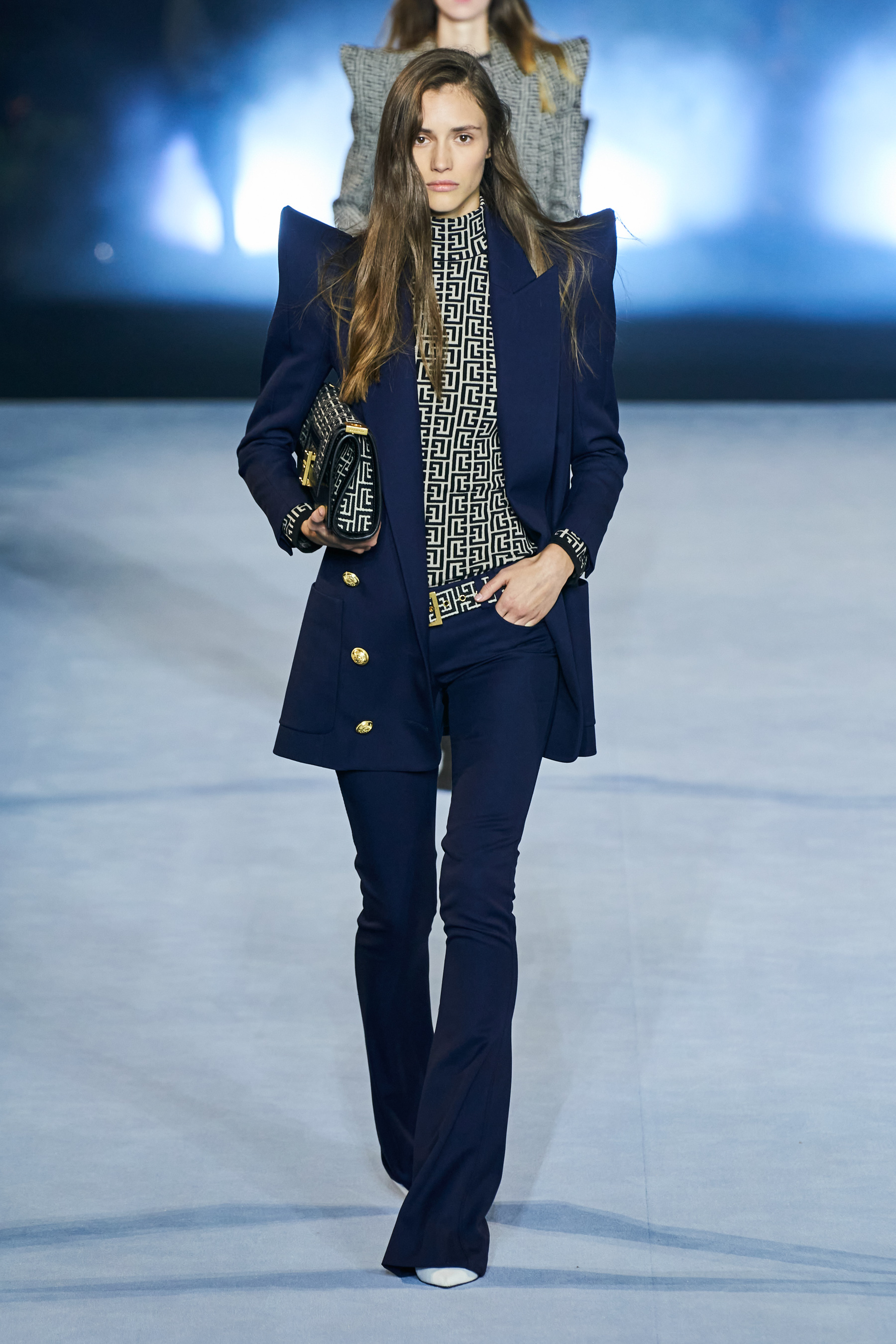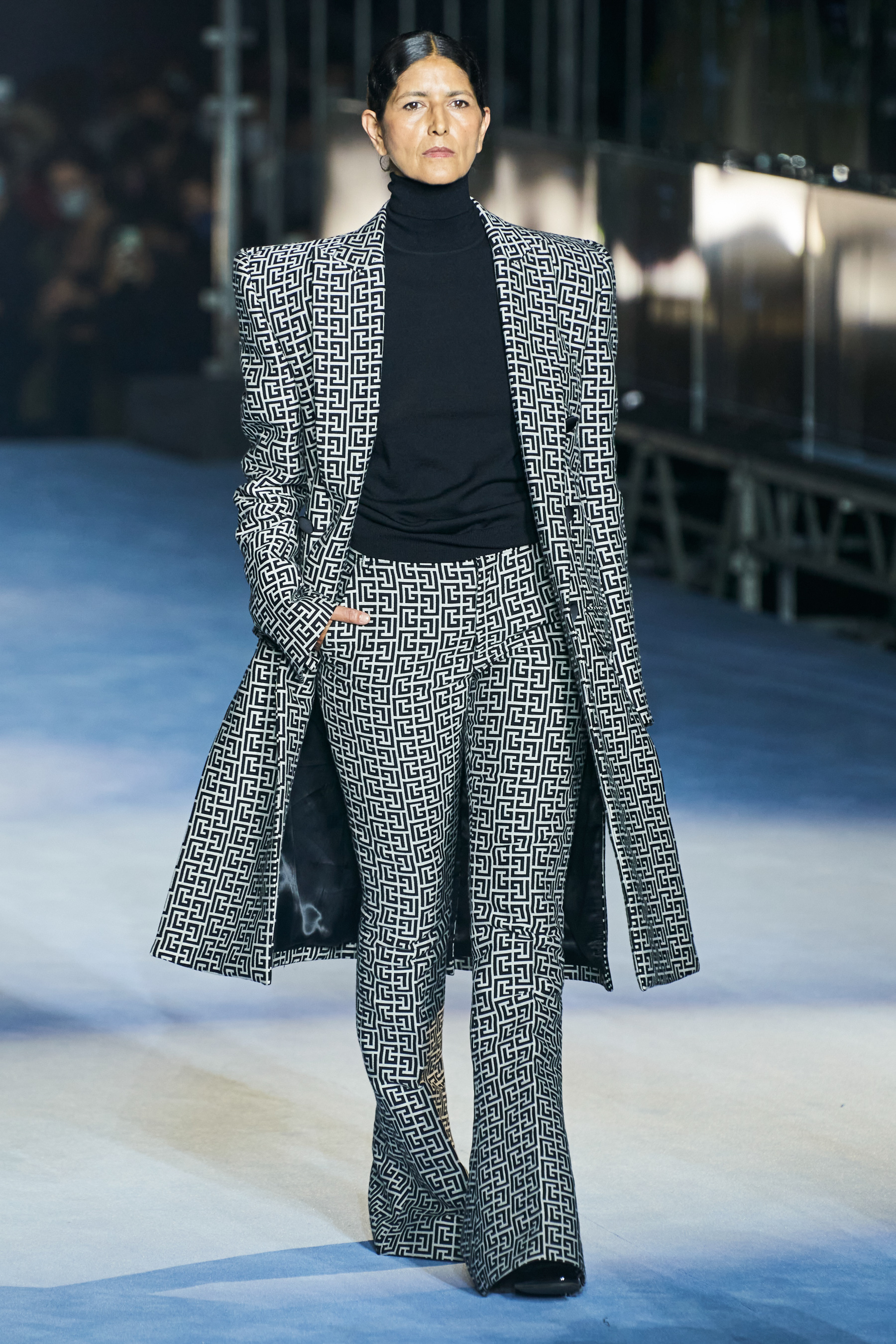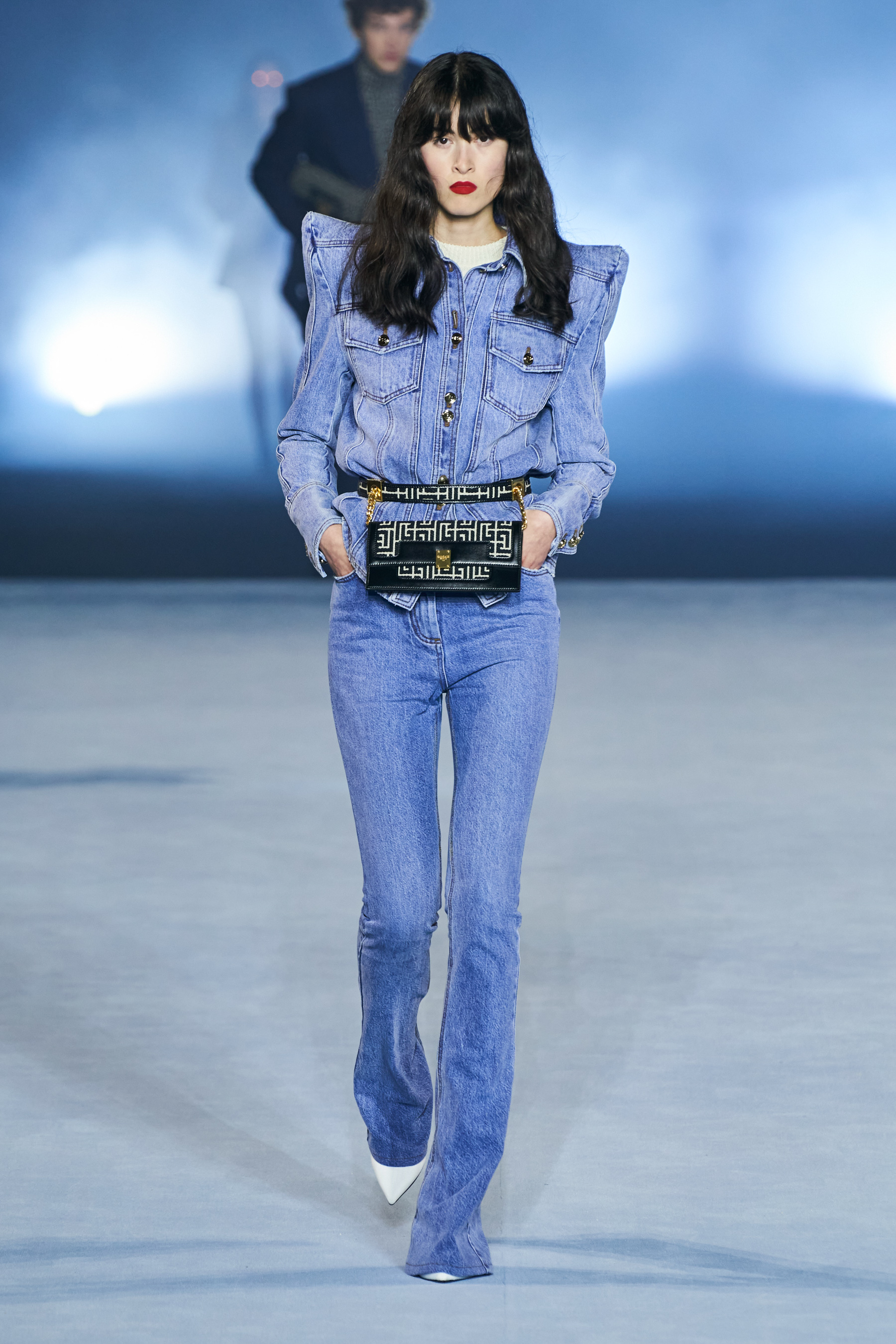 Το catwalk του Balmain, που πραγματοποιήθηκε στο Jardin des Plantes και μεταδόθηκε σε live streaming από το σάιτ, το Instagram, το TikTok, το Facebook, του Youtube, ακόμα και το Linkedin(!), ξεκίνησε - κόντρα στο τι είθισται - με τον Rousteing να βγαίνει πρώτος στη σκηνή και να παίρνει τη θέση του πάνω σ' ένα σκαμπό. Η συνέχεια ανήκε σε έξι Γαλλίδες - βετεράνους του μόντελινγκ που πραγματοποίησαν ένα μη συμβατικό (στο περπάτημα) ντεφιλέ στη σκηνή φορώντας τις δημιουργίες "Heritage" με τις οποίες ο Rousteing θέλησε να επαναφέρει και να τιμήσει το monogram μοτίβο του οίκου Balmain μέσα από κομψά σύνολα με πανωφόρια με έντονους ώμους, παντελόνες, καμπάνες και μία υπέροχη ολόσωμη φόρμα.