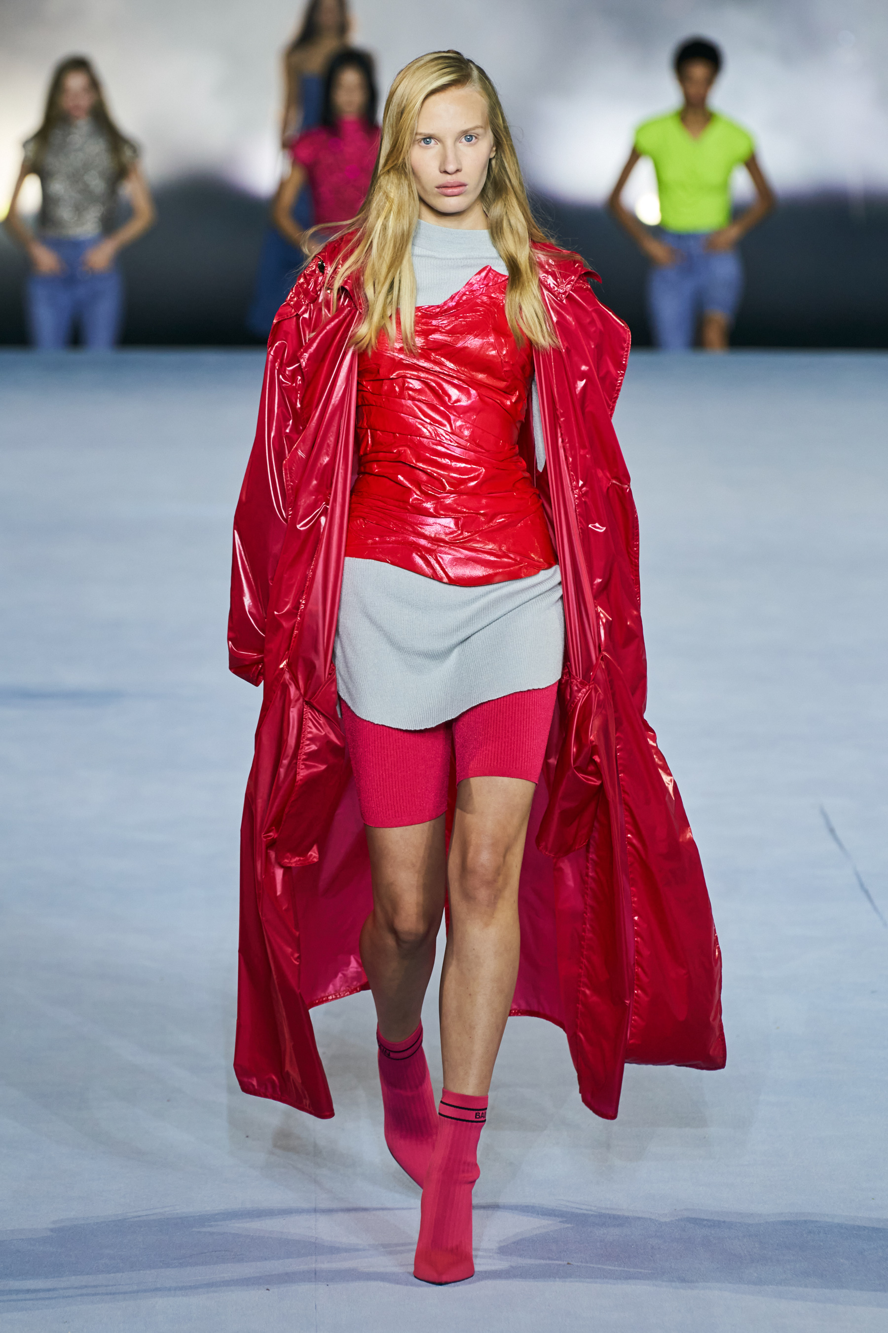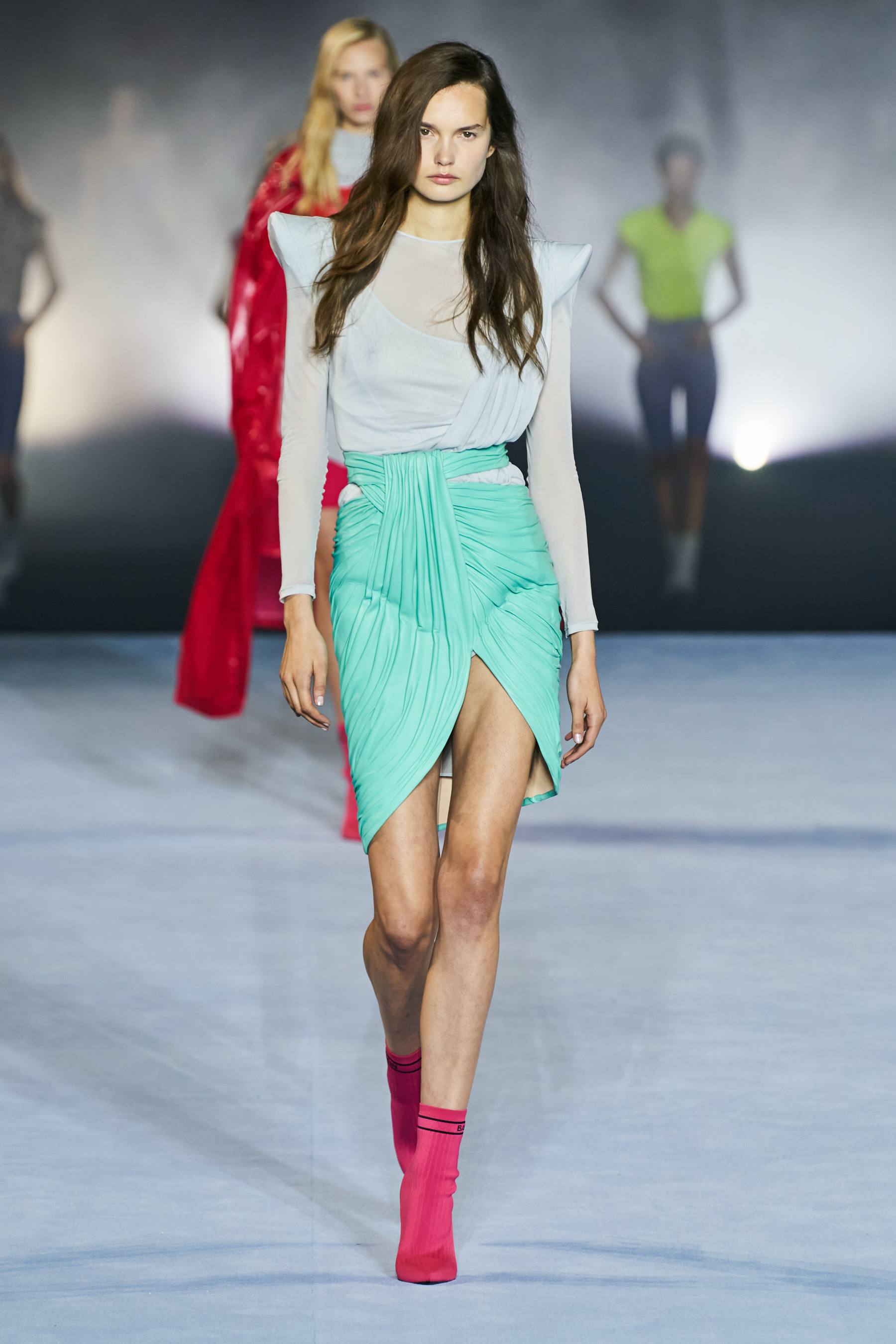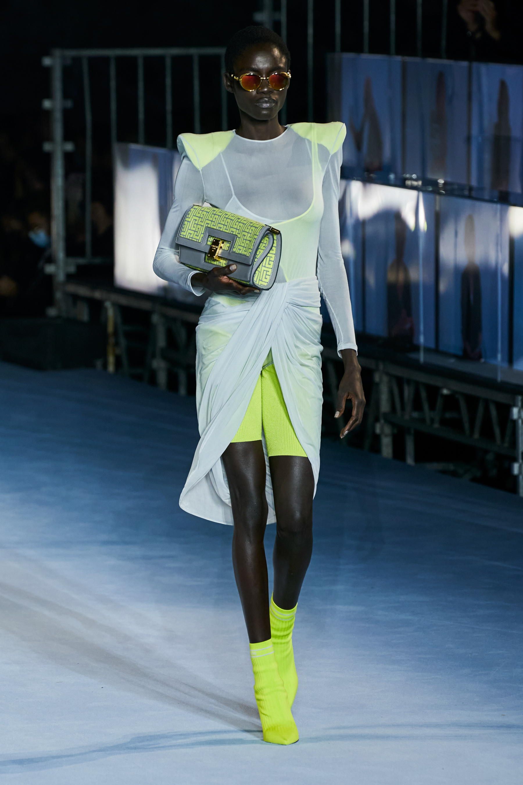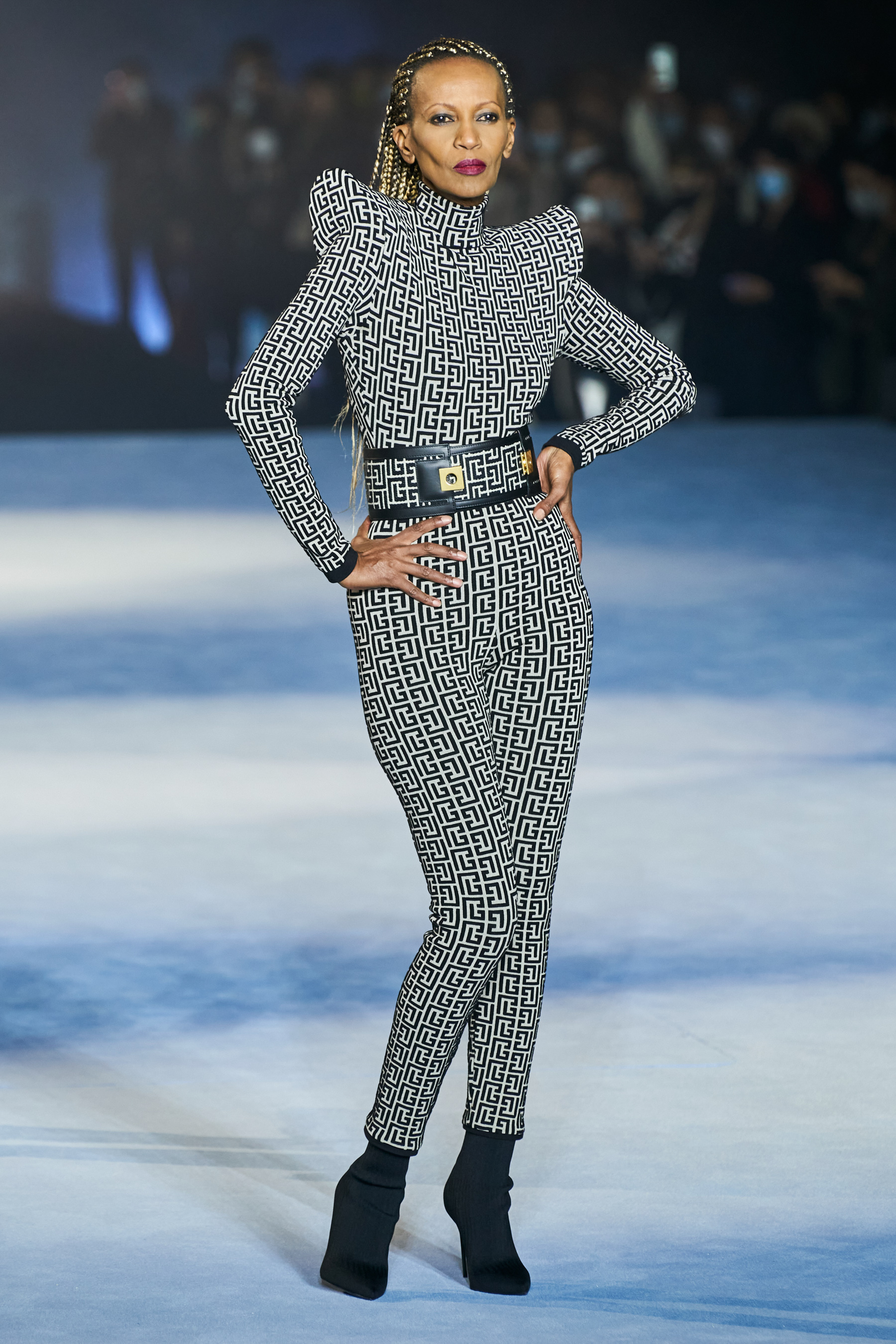 Το catwalk του Balmain, που πραγματοποιήθηκε στο Jardin des Plantes και μεταδόθηκε σε live streaming από το σάιτ, το Instagram, το TikTok, το Facebook, του Youtube, ακόμα και το Linkedin(!), ξεκίνησε - κόντρα στο τι είθισται - με τον Rousteing να βγαίνει πρώτος στη σκηνή και να παίρνει τη θέση του πάνω σ' ένα σκαμπό. Η συνέχεια ανήκε σε έξι Γαλλίδες - βετεράνους του μόντελινγκ που πραγματοποίησαν ένα μη συμβατικό (στο περπάτημα) ντεφιλέ στη σκηνή φορώντας τις δημιουργίες "Heritage" με τις οποίες ο Rousteing θέλησε να επαναφέρει και να τιμήσει το monogram μοτίβο του οίκου Balmain μέσα από κομψά σύνολα με πανωφόρια με έντονους ώμους, παντελόνες, καμπάνες και μία υπέροχη ολόσωμη φόρμα.