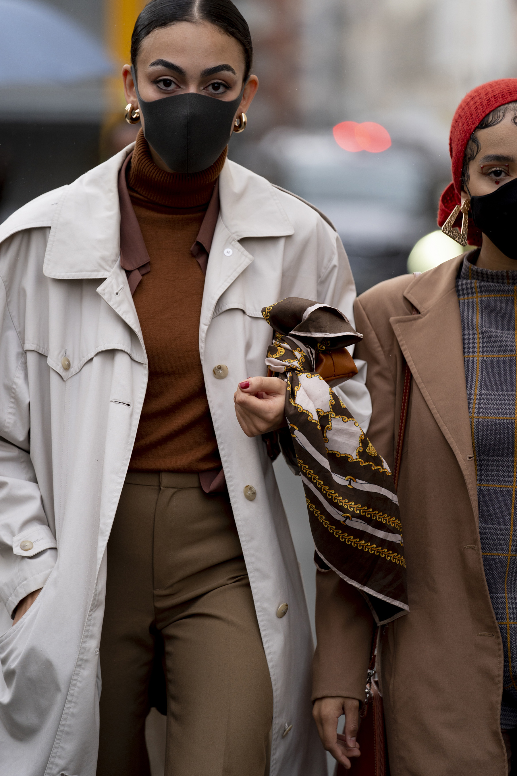 Οι εμφανίσεις τους πρόσφεραν ξανά απεριόριστη έμπνευση και ολοκληρώθηκαν με εντυπωσιακά αξεσουάρ όπως mini bags, hair clips, μεταξωτά μαντήλια, chunky αλυσίδες, γυαλιά ηλίου βγαλμένα από την δεκαετία των 90's, ankle boots με ζωηρά μοτίβα και φυσικά οι απαραίτητες μάσκες προστασίας.