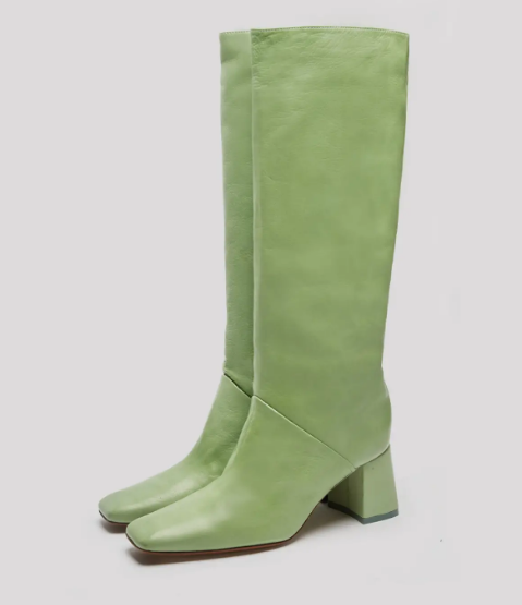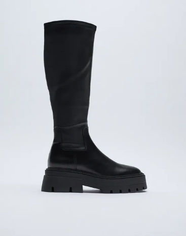 ψηλή δερμάτινη μπότα με τακούνι, ZARA