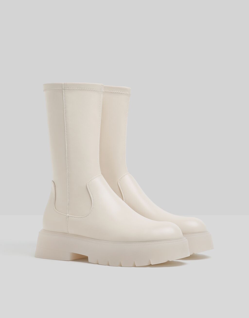 Μποτίνια εφαρμοστά με πλατφόρμα και ημιδιαφανή σόλα Bershka 39.99 €, bershka.com