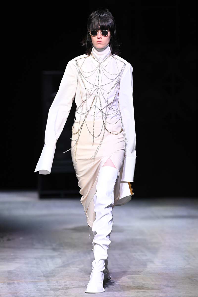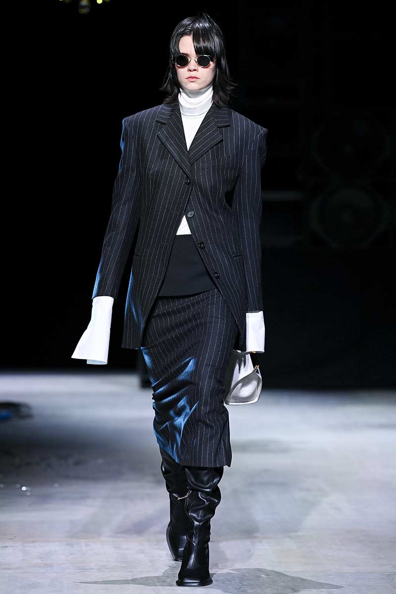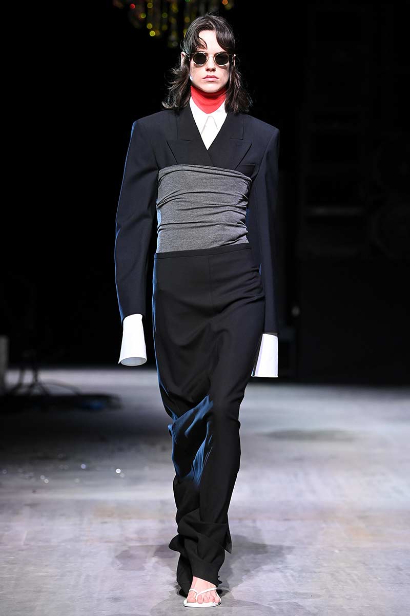 "Μία ωδή στην γυναικεία φύση", έτσι προλογίζει τη συλλογή της η Sportmax, αποκαλύπτοντας ότι πηγή έμπνευσης αποτέλεσε η "αβέβαιη πλην ελπιδοφόρα" δεκαετία του '20s. Ωστόσο, παρά τις νοσταλγικές αναφορές και το βλέμμα σε σπουδαίες γυναίκες του χθες, το "παρών" κι ακόμα περισσότερο το "μέλλον" είναι ξεκάθαρο σε μία collection που το statement tailoring αποτελεί το βασικό του άξονα με κοστούμια από τα οποία ξεχωρίζουν τα επιμήκη blazers, αλλά και τα long slim μάλλινα παλτό. Τα δερμάτινα κομμάτια, το tie-dye και τα ξεχωριστά party looks, όπως το στράπλες φόρεμα από κρυστάλλους συνδυασμένο με κολάν ή το billowy φόρεμα από ταφτά φορεμένο επίσης πάνω από κολάν, ξεχωρίζουν ανάμεσα στις προτάσεις του δημοφιλούς fashion brand που οραματίζεται το μέλλον με αισιοδοξία και δυναμισμό.