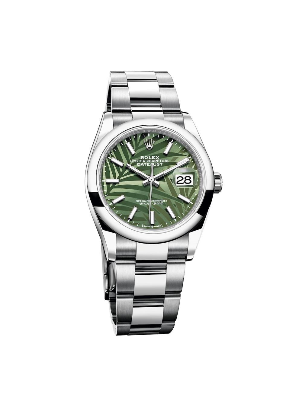 Τα νέα καντράν της σειράς Oyster Perpetual Datejust 36 συστήνουν δυο νέα αποκλειστικά σχέδια: το μοτίβο από φύλλο φοίνικα εμπνευσμένο από τα τροπικά δάση και το μοτίβο με ραβδώσεις, κλασικό στην αισθητική της Rolex. Για τα νέα καντράν, η Rolex χρησιμοποιεί χαλκό, ψευδάργυρο, νικέλιο, χρώμιο, τιτάνιο και πυρίτιο, με χρώματα πράσινο της ελιάς, ασήμι και χρυσό. Είναι κατασκευασμένα με τις πιο προηγμένες επεξεργασίες για τη δημιουργία έντονων μεταλλικών χρωμάτων.