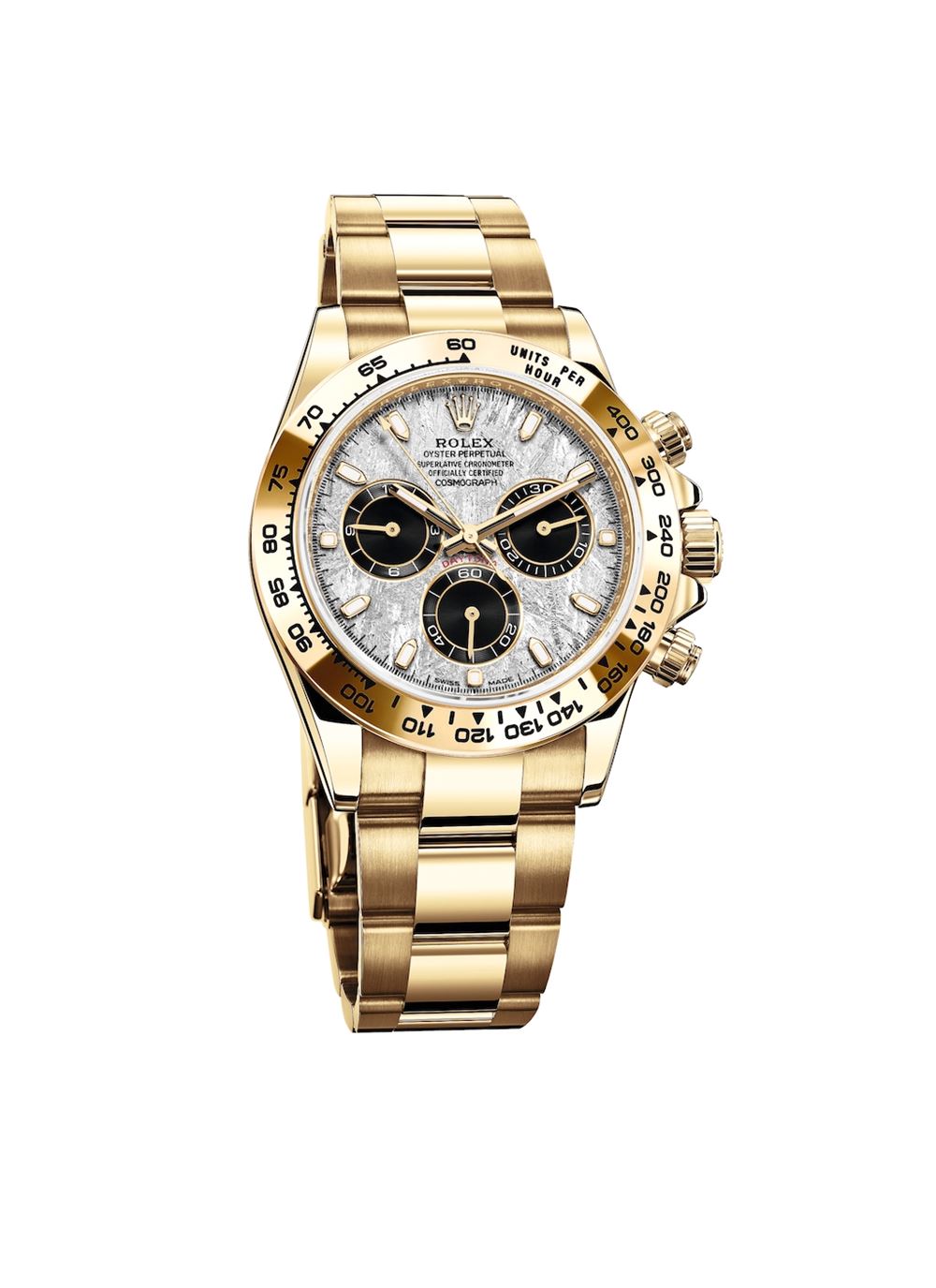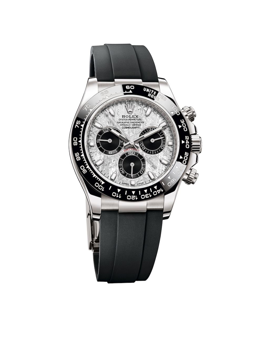 Το νέο Oyster Perpetual Cosmograph Daytona παρουσιάζεται σε 3 εκδοχές από κίτρινο, λευκό και Everose χρυσό 18κ. με κάσα διαμέτρου 40mm. Και οι τρεις καινοτομούν με τα νέα καντράν από μετεωρίτη, που είναι εμπνευσμένα από το ταξίδι ενός αστεροειδή στον χρόνο και στον χώρο. Η Rolex διαλέγει τον μεταλλικό μετεωρίτη με αυστηρά αισθητικά κριτήρια: κάθε θραύσμα που επιλέγεται, έχει μια μοναδική εσωτερική σύσταση που κάνει κάθε καντράν Cosmograph Daytona με μετεωρίτη μοναδικό στο είδος του.