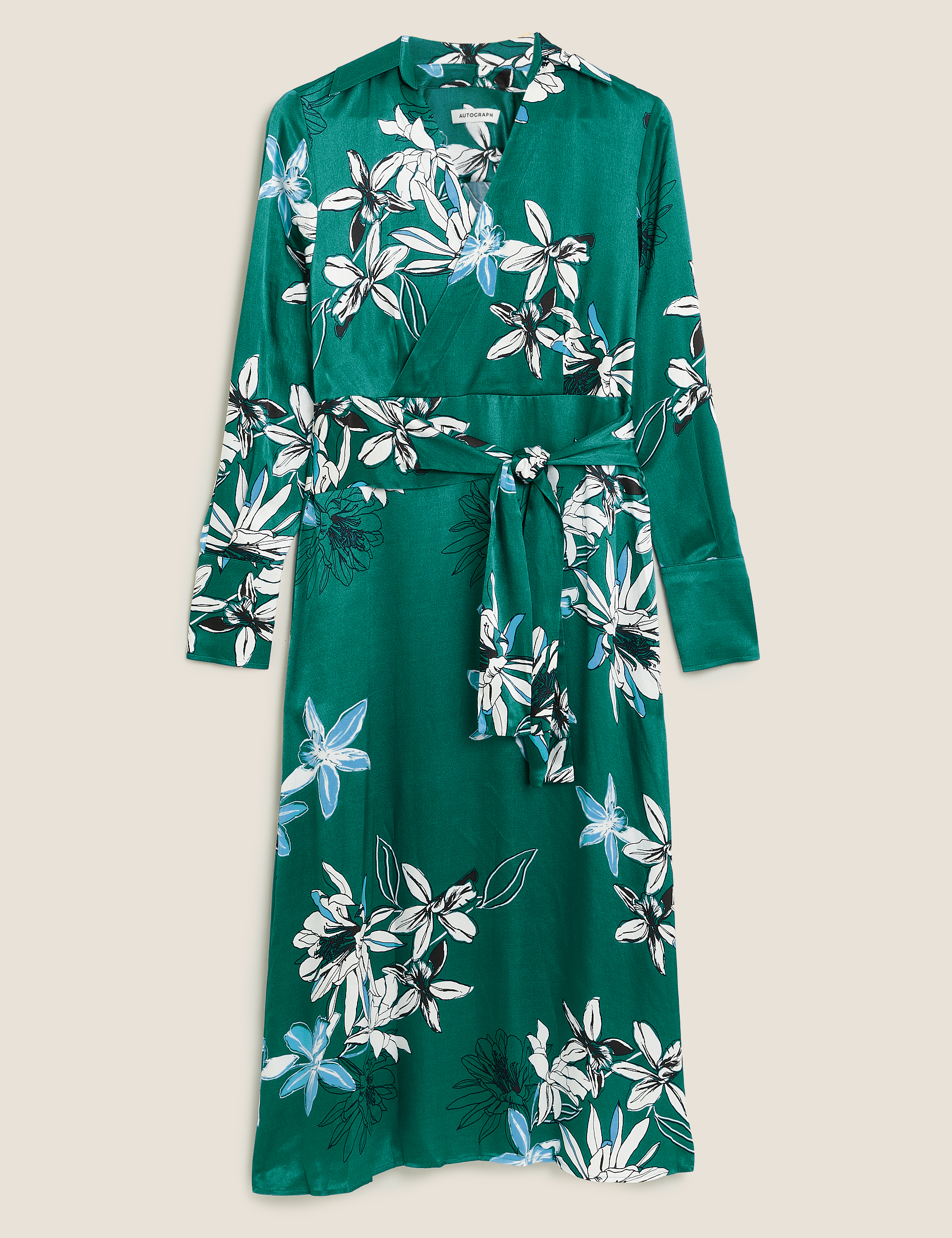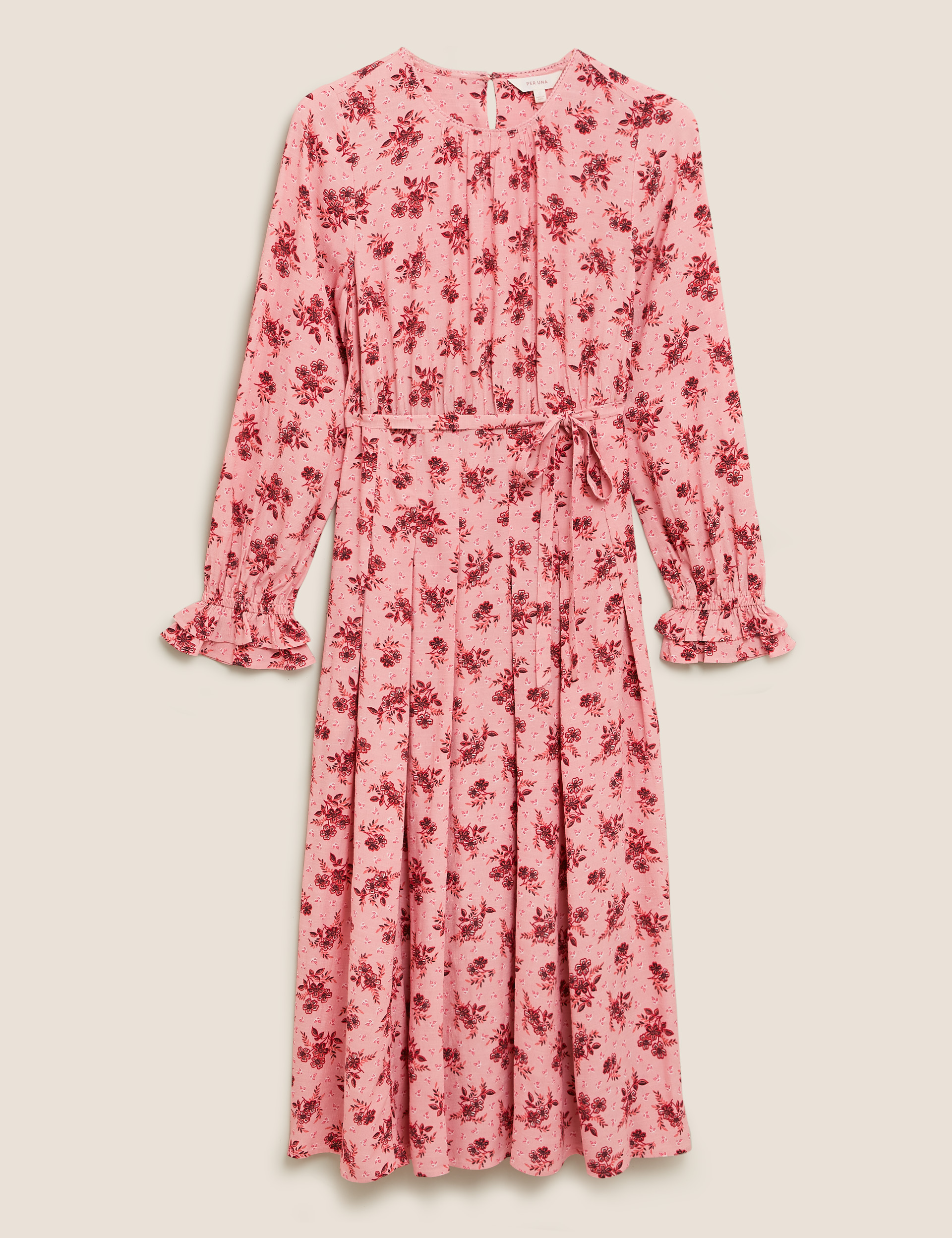 Midi floral φόρεμα με ζώνη 69,95€ Marks and Spencer