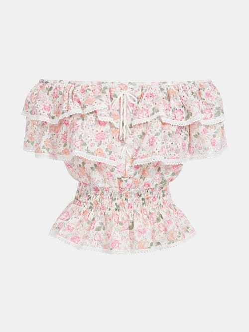 Off shoulder μπλούζα με βολάν Guess