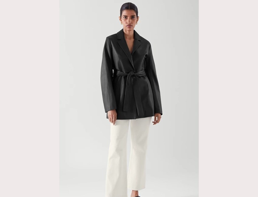 Μαύρο σακάκι από δέρμα νάπα και ζώνη στη μέση, COS