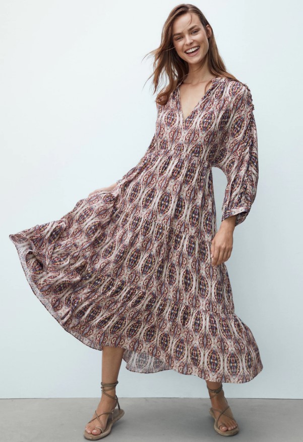 Μίντι εμπριμέ φόρεμα με μανίκι, Mango