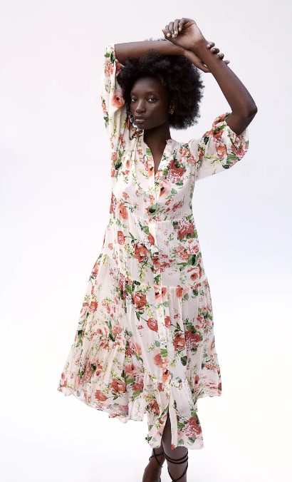 Μίντι εμπριμέ φόρεμα με μανίκι, Zara