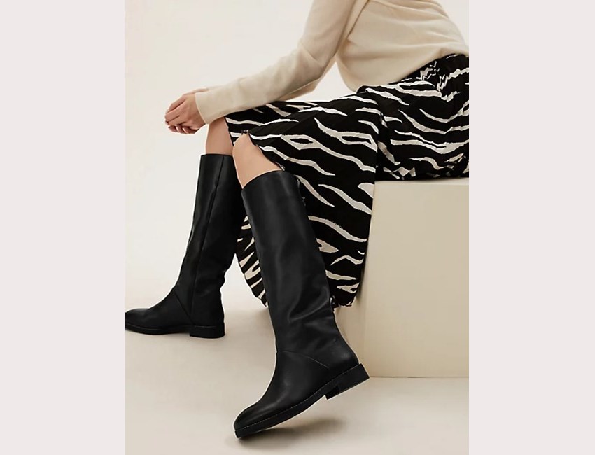 Ψηλές δερμάτινες μπότες με τετράγωνο τακούνι, Marks & Spencer