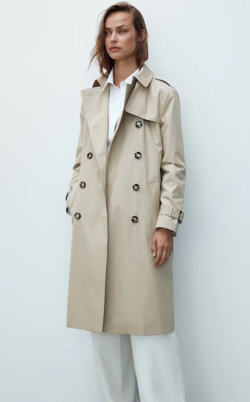 Βαμβακερή μπεζ καμπαρντίνα με ζώνη στη μέση, Massimo Dutti