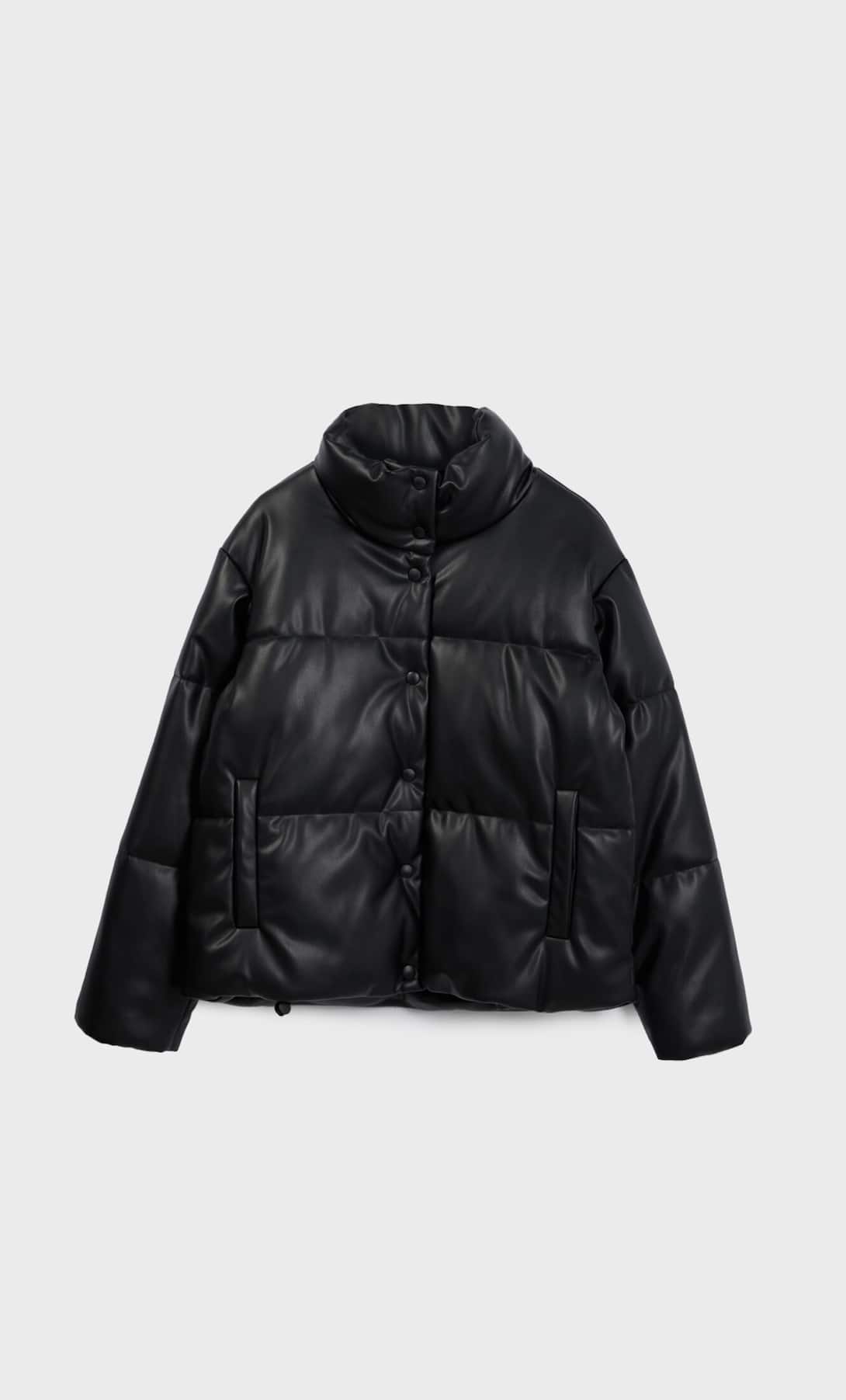 Φουσκωτό μπουφάν με εφέ δέρματος Stradivarius