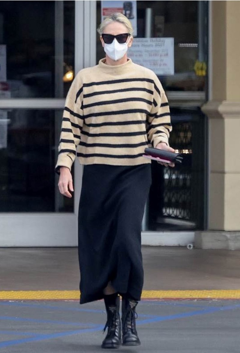 Η Charlize Theron κατοικεί στο Λος Άντζελες, μία πόλη που δεν έχει ιδιαίτερα χαμηλή θερμοκρασία. Παρ' όλα αυτά, το κρύο αγγίζει και την πόλη των αγγέλων και έτσι η διάσημη ηθοποιός δημιούργησε το κατάλληλο σύνολο, που ανταποκρίνεται πλήρως στις απαιτήσεις του καιρού εκεί. Η ίδια έκανε ένα casual outfit επιλέγοντας ένα ριγέ πουλόβερ από τα Mango, μία μίντι μαύρη φούστα και combat μποτάκια. Από το casual look της εμείς ξεχωρίσαμε το hero piece της γυναικείας χειμερινής γκαρνταρόμπας, το πουλόβερ.